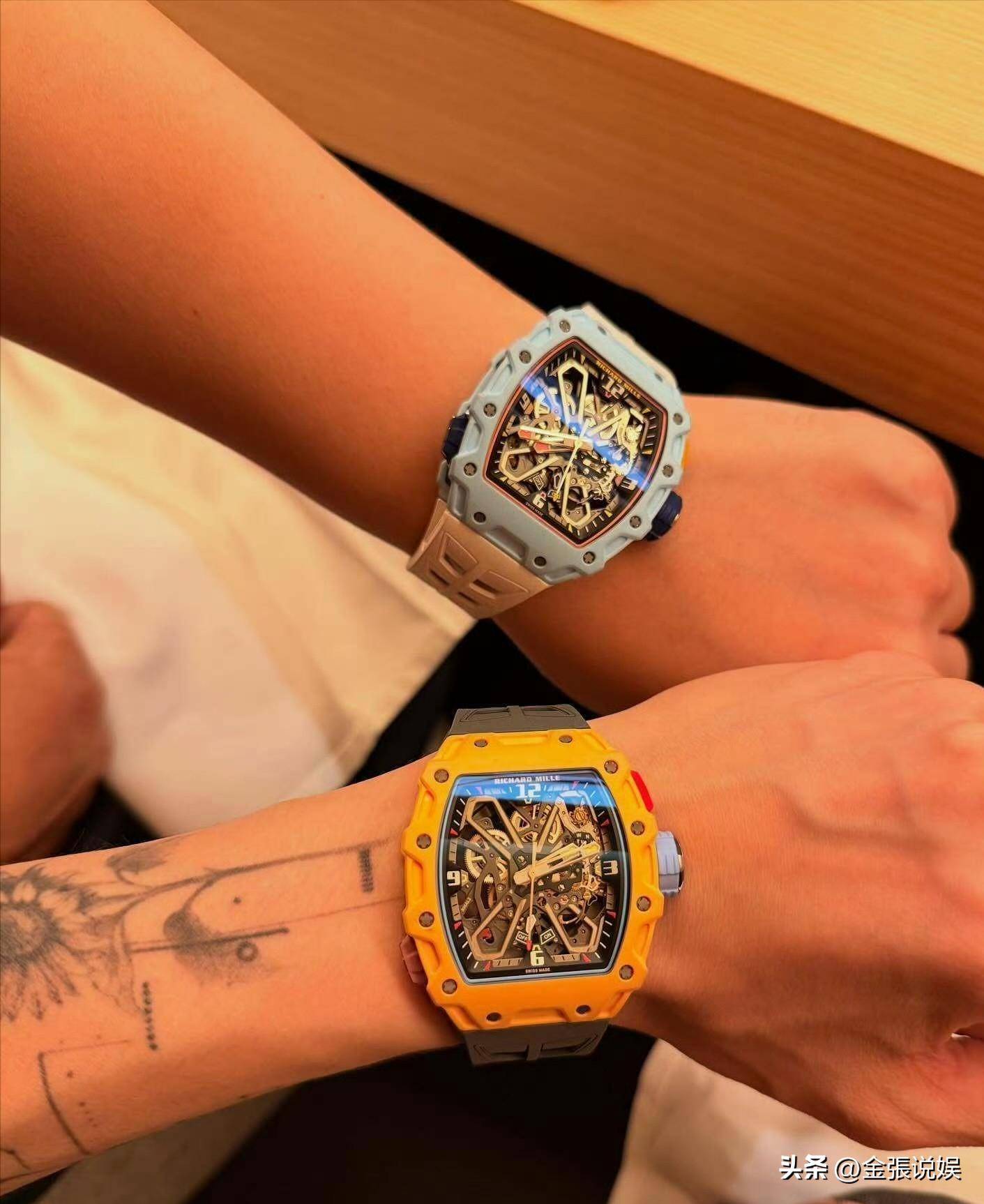 在十张照片中,那张两只手腕同框的照片格外引人注目。画面中两只手并排摆放,佩戴着相同款式的表,瞬间点燃了评论区。