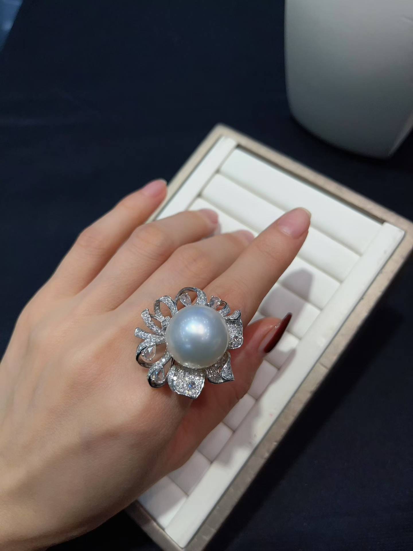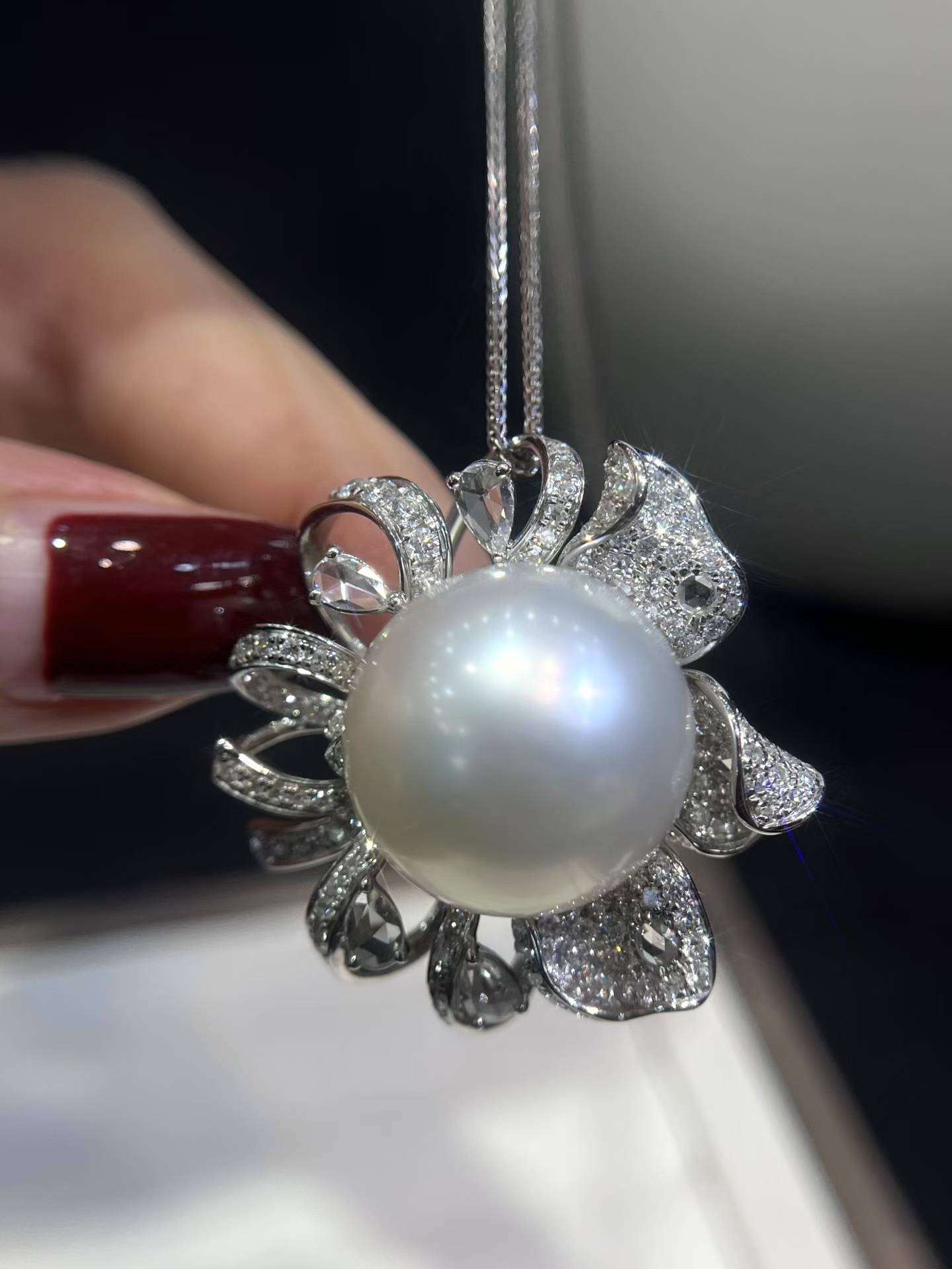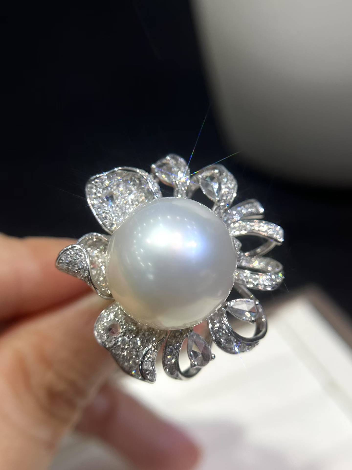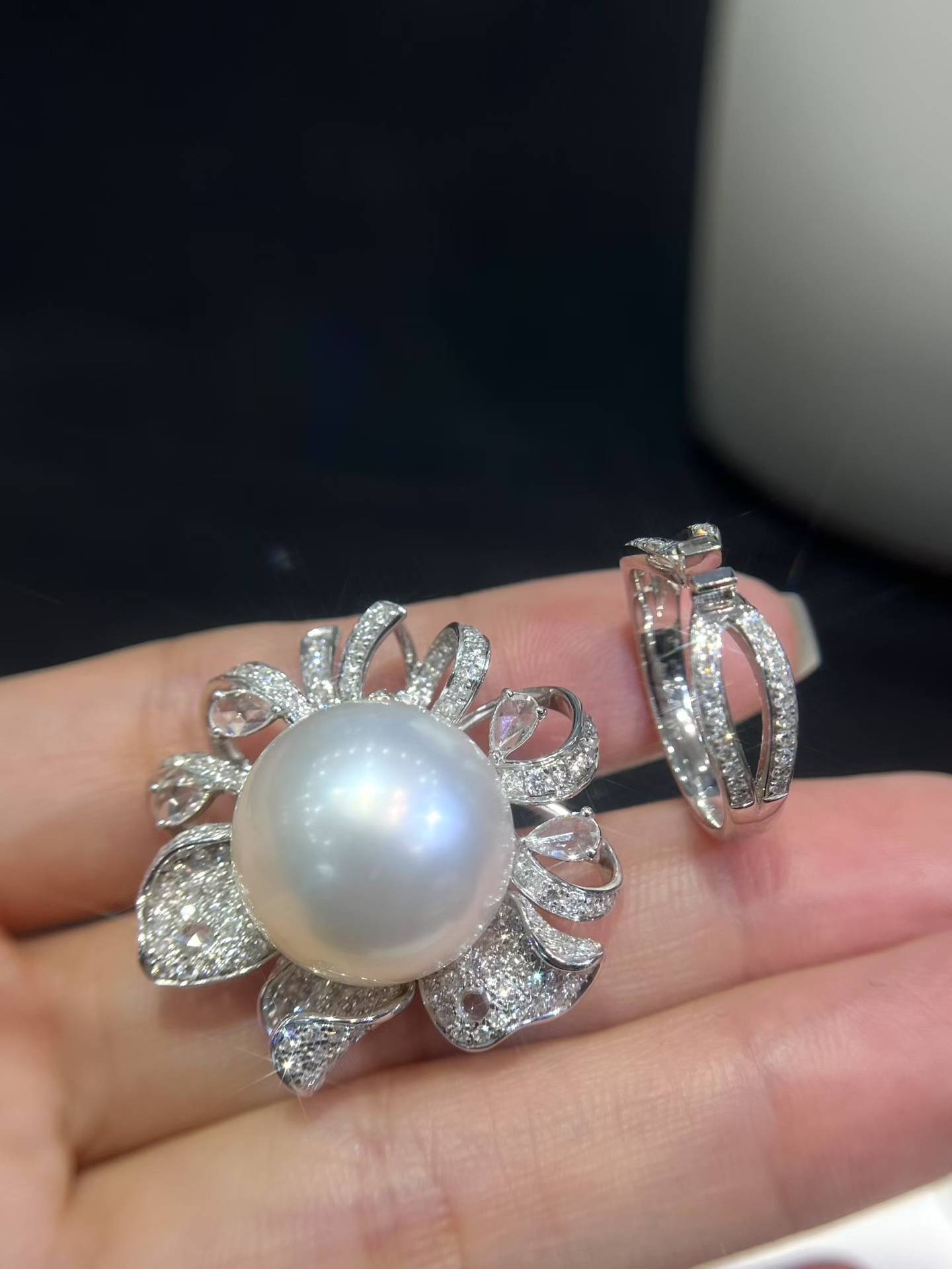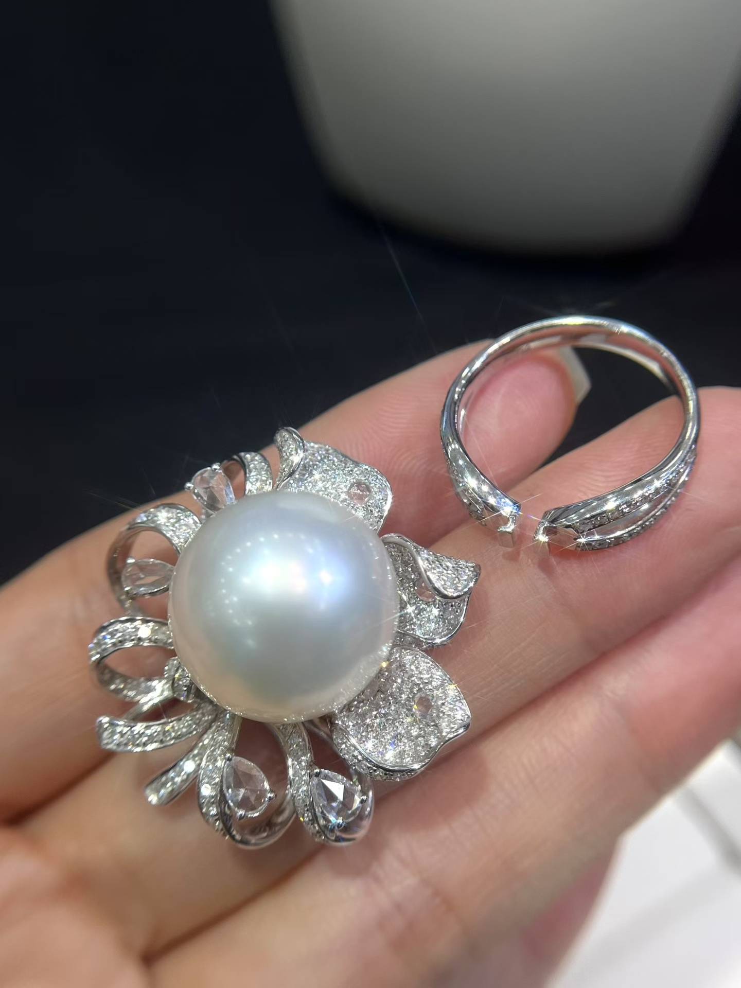 澳白✨18k满钻💎豪华镶嵌戒指&吊坠戒指&吊坠两戴款#1517-18mm,强光,丝滑面干净