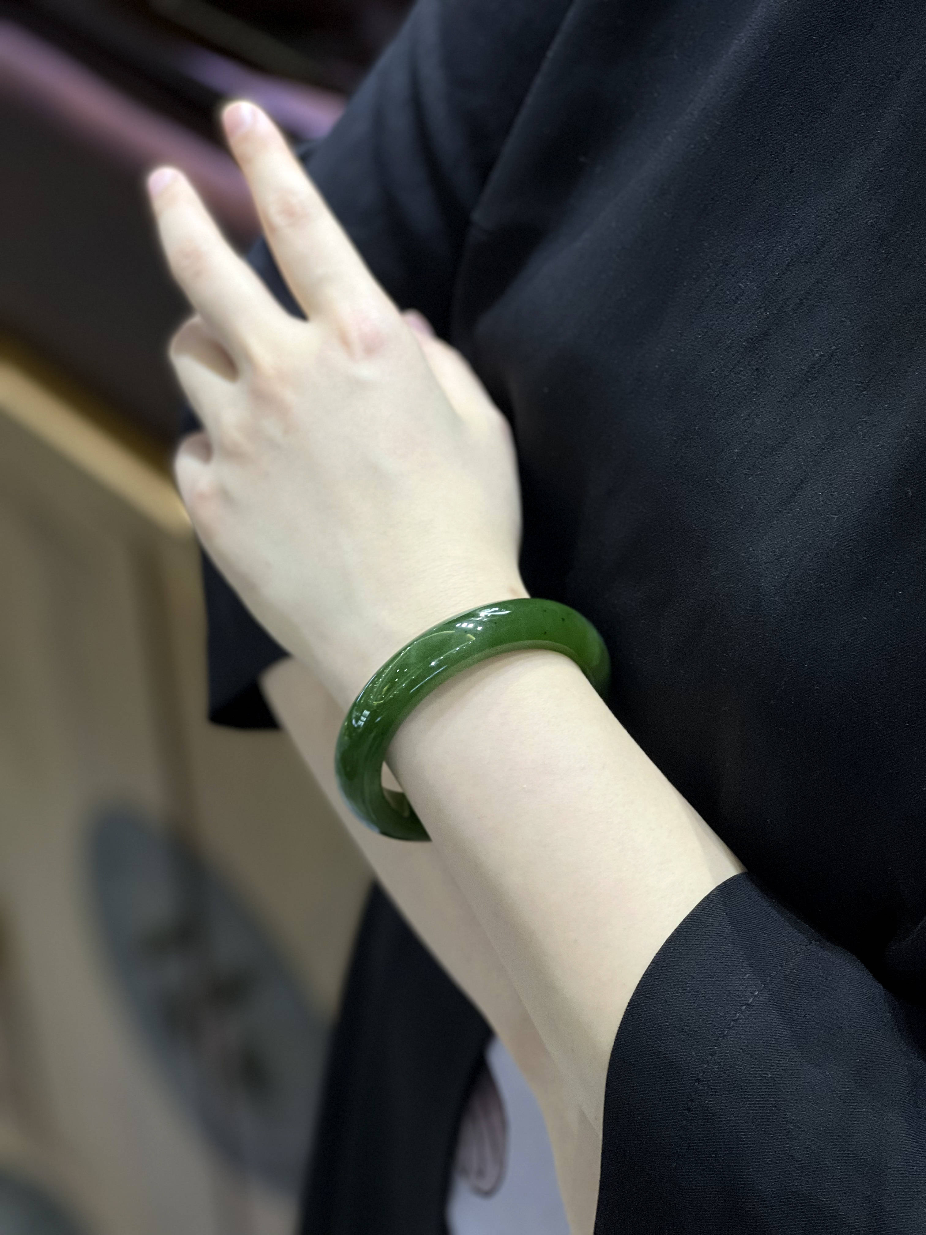 天然和田碧玉的颜色具有自然层次感,而非均匀一致的单调绿色。优质碧玉通常伴有细微的黑点,这是铬元素自然结晶的产物,亦是天然碧玉的重要标识——需说明的是,黑点数量越少、分布越集中,碧玉的品质与价值越高。针对消费者担忧的碧玉手镯裂纹问题,可采用以下简易鉴别方法:在自然光环境下,将手镯置于白色背景上缓慢转动,裂纹会呈现明显的白色痕迹,而天然水线则呈透明状,二者易于区分。