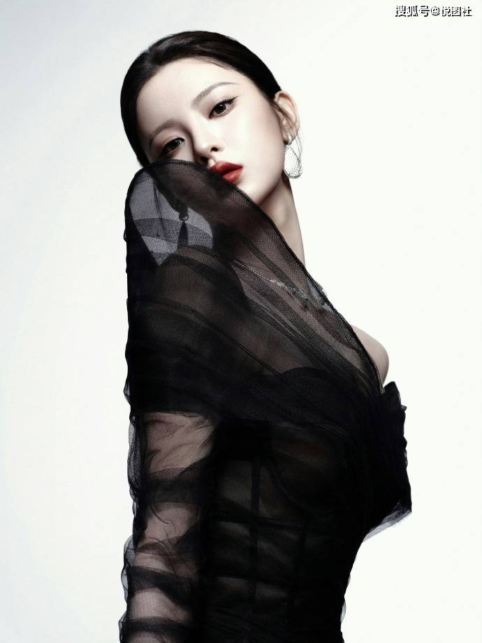 杨超越这组黑纱蕾丝造型直接杀疯!黑色薄纱裙衬得肤白胜雪,蕾丝眼罩增添神秘氛围,红唇与钻石珠宝相衬,又美又蛊。她或慵懒倚坐、或轻拢纱袖,每一个姿态都自带冷艳破碎感,把优雅与性感的分寸感拿捏得恰到好处,这氛围感说是 “人间富贵花” 也不为过!