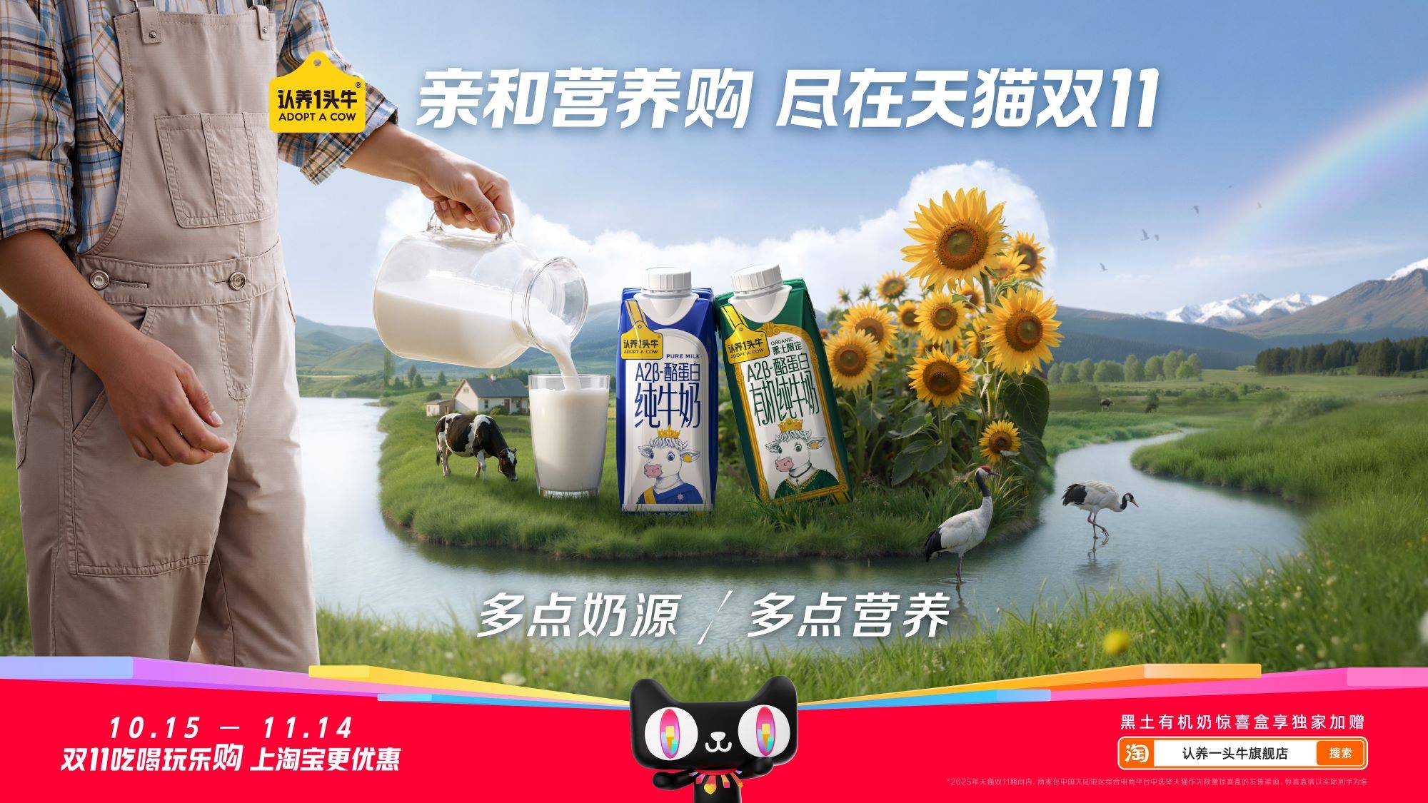 在双11天猫“猫头营销”活动中,认养一头牛成为乳饮唯一入选品牌,获得线上线下超亿级曝光。这充分证明了其品牌的影响力和市场竞争力。消费者对认养一头牛的认可,也源于其对品质的严格把控,正如其宣传语所说“奶牛养得好牛奶才会好”。