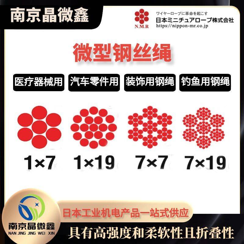 钓鱼用钢绳:材质:SUS304;特性:特柔软;强度是尼龙织物的2倍以上,不因与树根、岩石摩檫而断裂;不打结,不沾水,即使残留在水中也能分解。钢丝直径0.09-0.19mm,绳索直径0.27-0.57mm,绞合结构为1*7。表面外包瓷漆。装饰用钢绳(珠宝、项链、手链用):珍珠、水晶等装饰品(项链、手链)芯子使用耐腐蚀性能好的高级不锈钢SUS316L(Ni12-15%、Cr16-18%、Mo2-3%)。装饰用不锈钢钢绳,一般在钢绳表面被覆盖与宝石颜色协调的尼龙外皮,并考虑装饰色规格 结构:1x7圆股 材质:进口SUS304 主要特点:超柔软,大牵引力,耐疲劳,耐磨损,不伸长