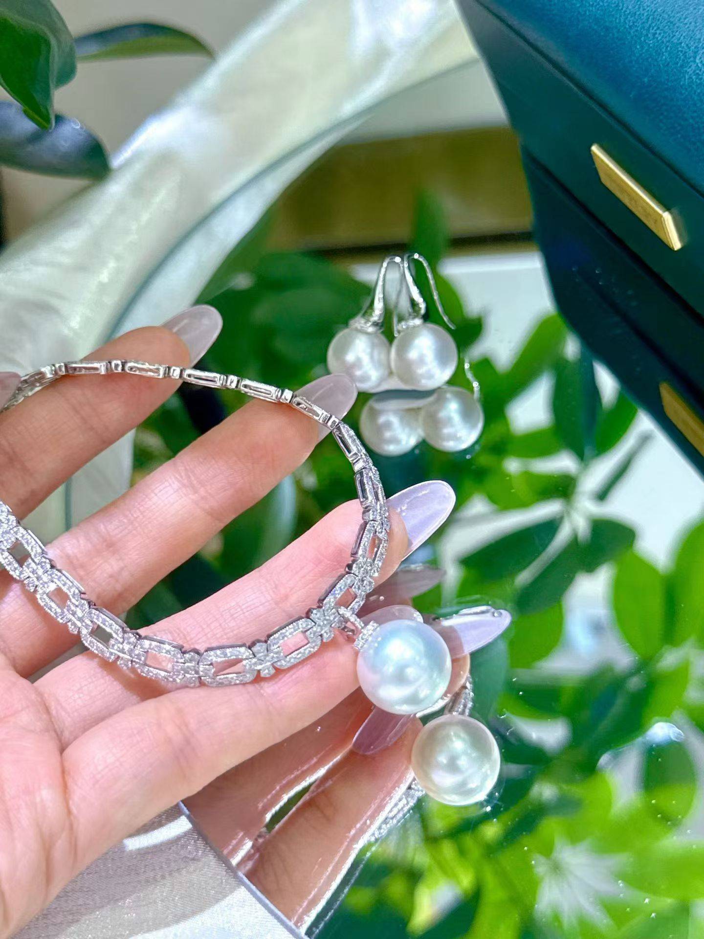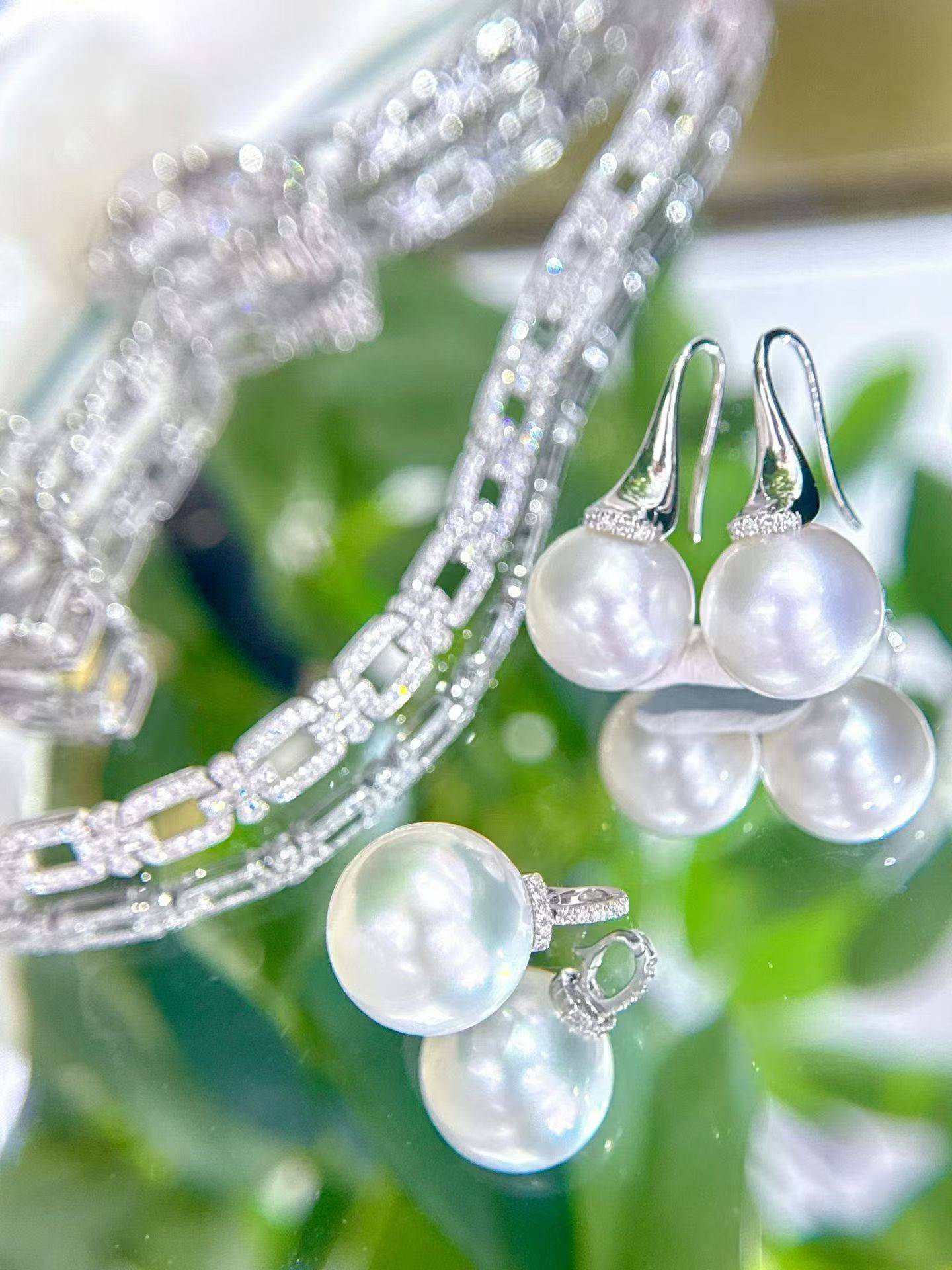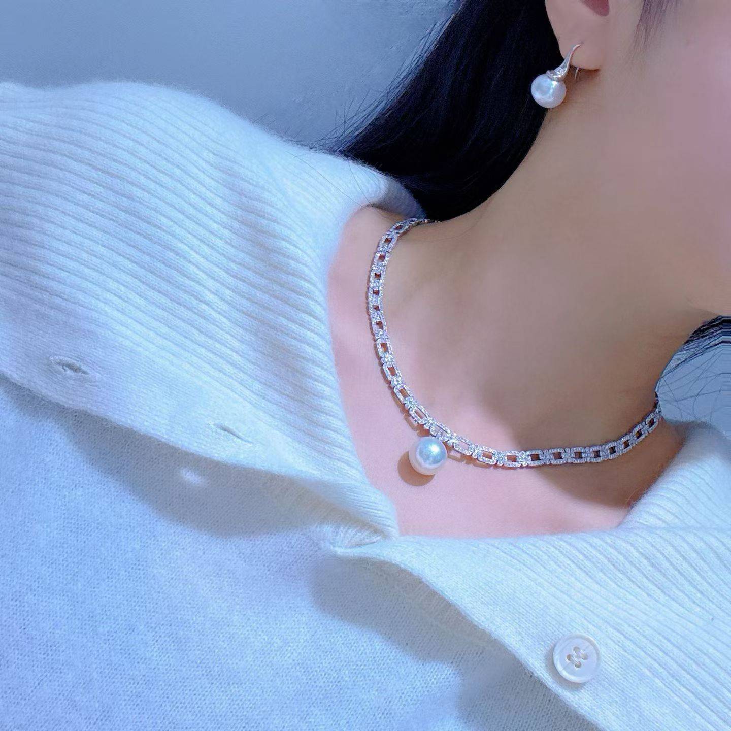 公主👸🏻 钻石项链13-14mm 高品质透亮特选光的澳白裸珠 可以拆卸两种佩戴方式 18K白金钻石💎0.07ct ➕5.45ct;搭配澳白耳钩12-13mm 正圆冷白几乎无瑕 💠0.09ct