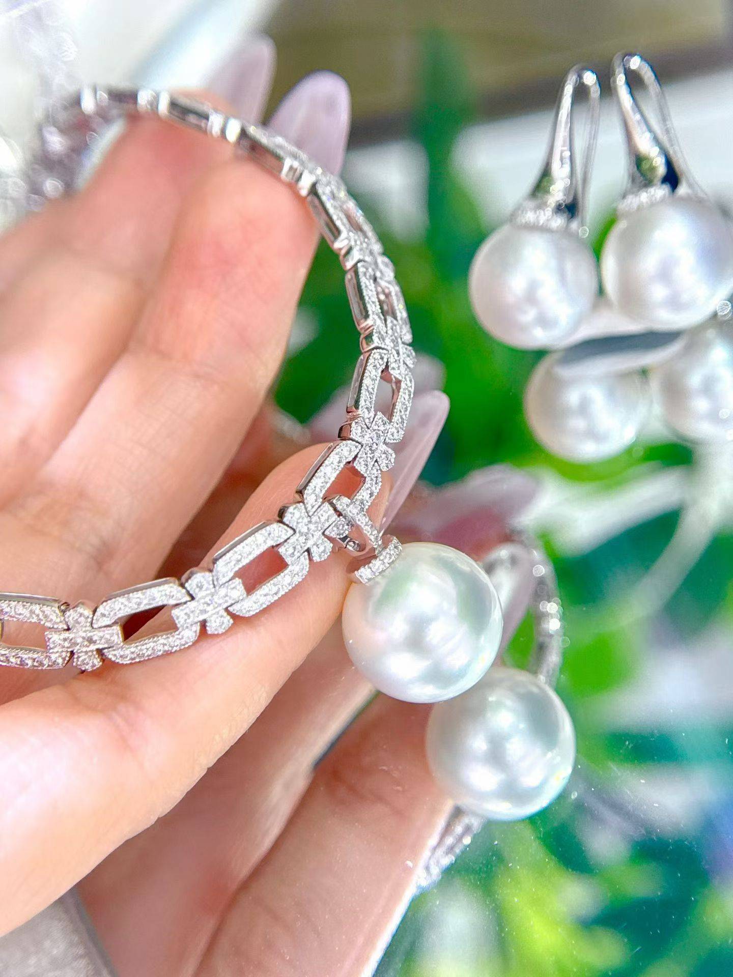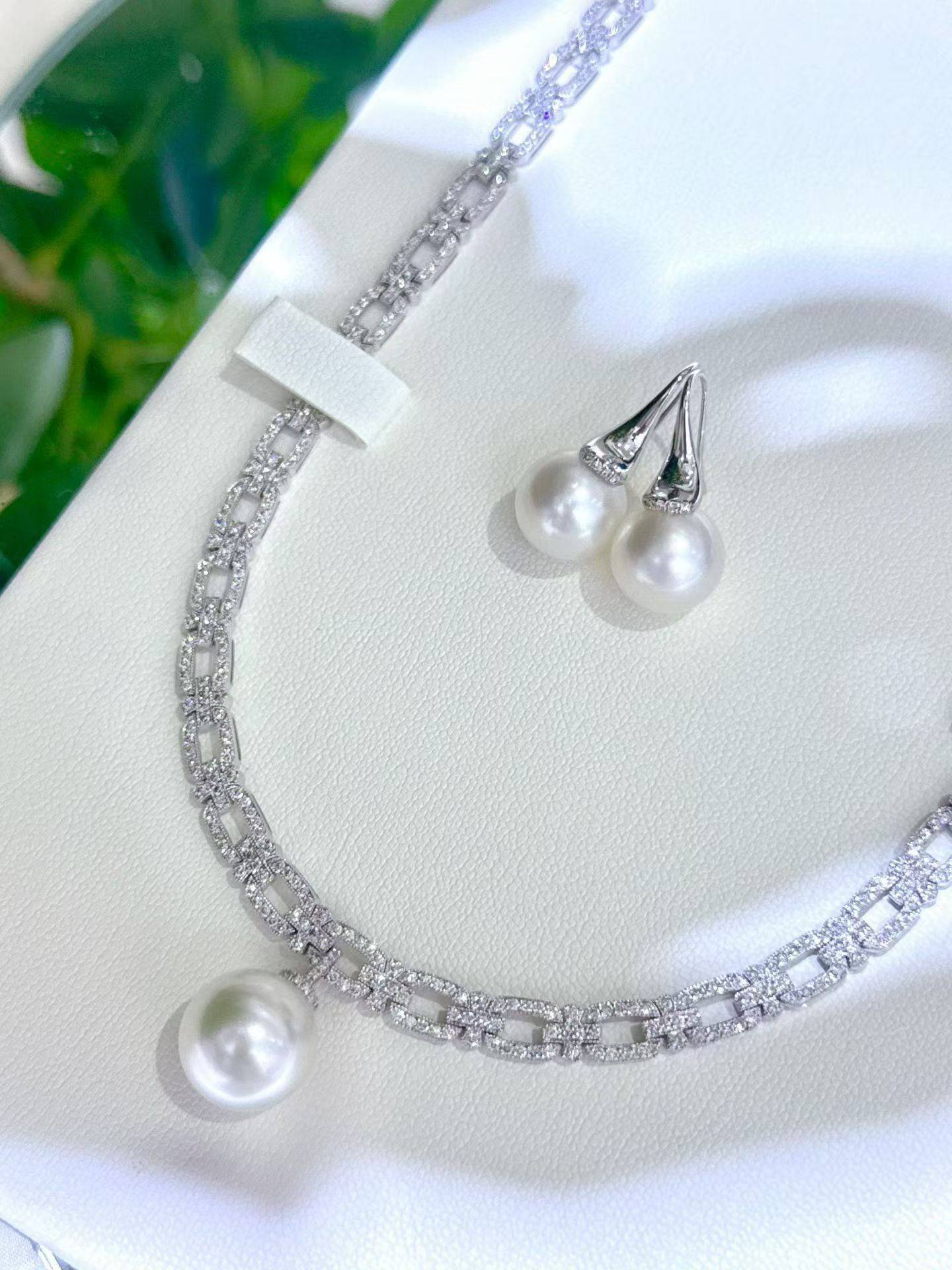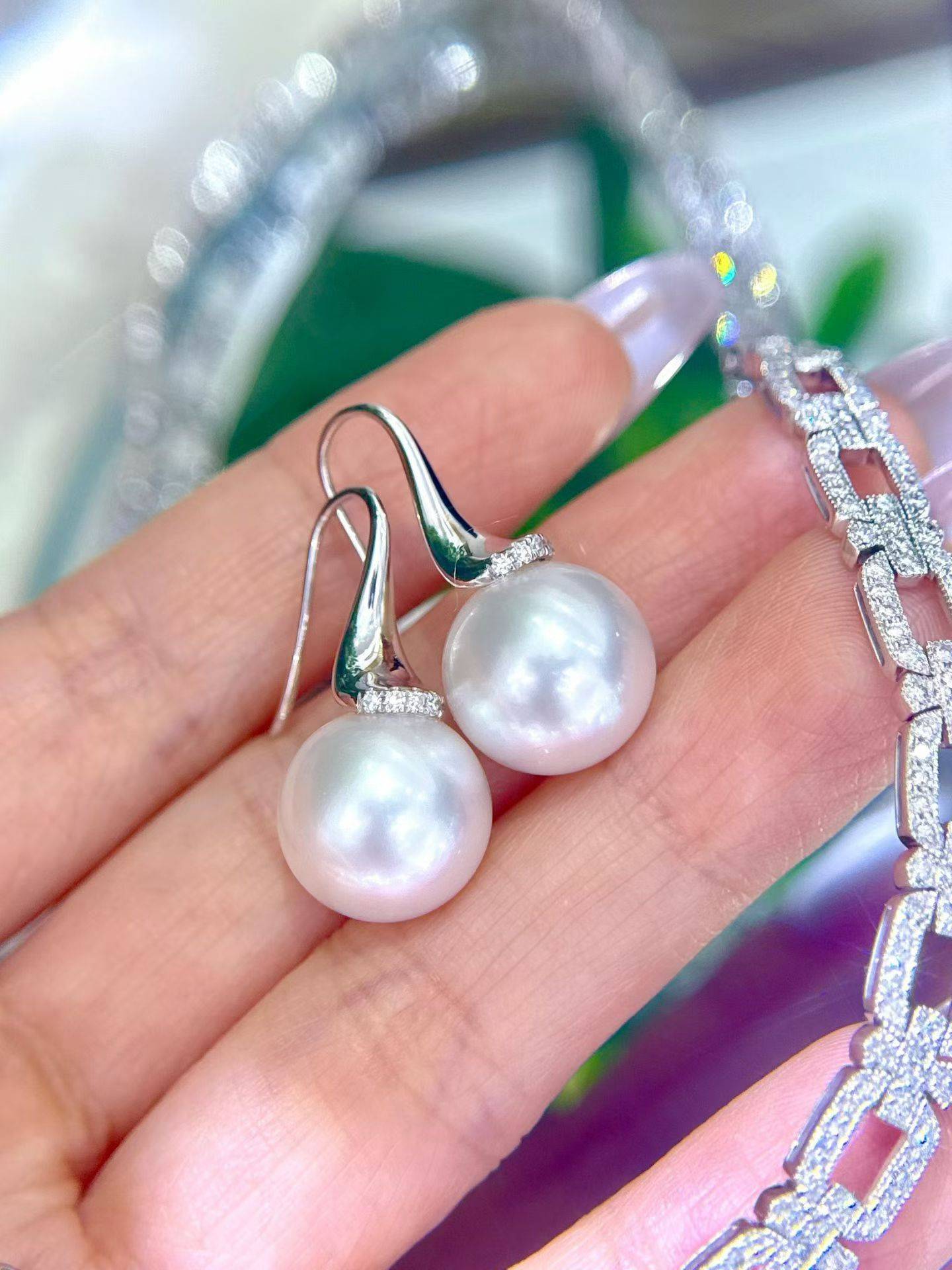 公主👸🏻 钻石项链13-14mm 高品质透亮特选光的澳白裸珠 可以拆卸两种佩戴方式 18K白金钻石💎0.07ct ➕5.45ct;搭配澳白耳钩12-13mm 正圆冷白几乎无瑕 💠0.09ct