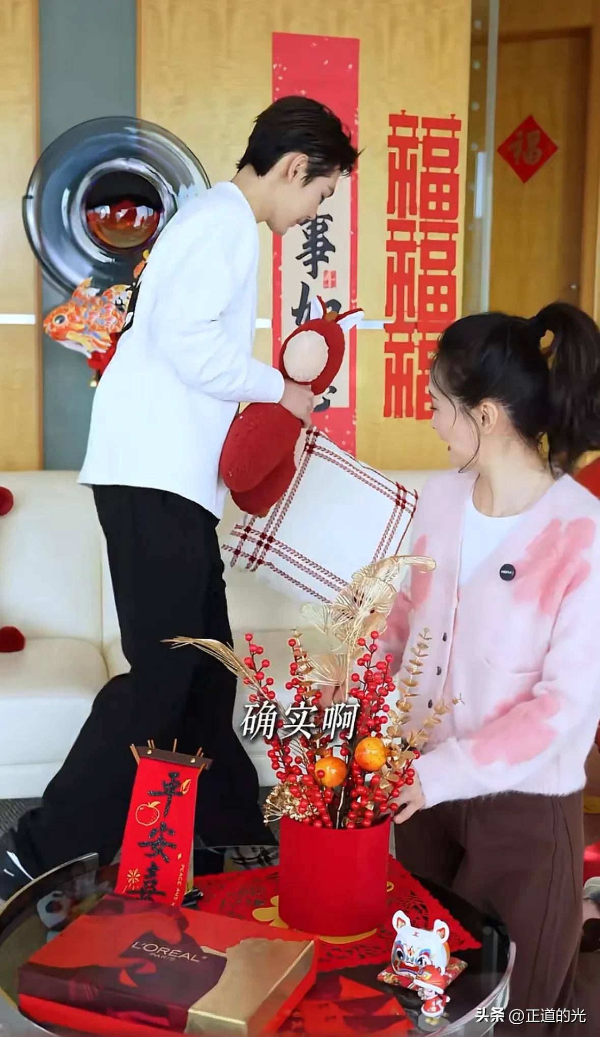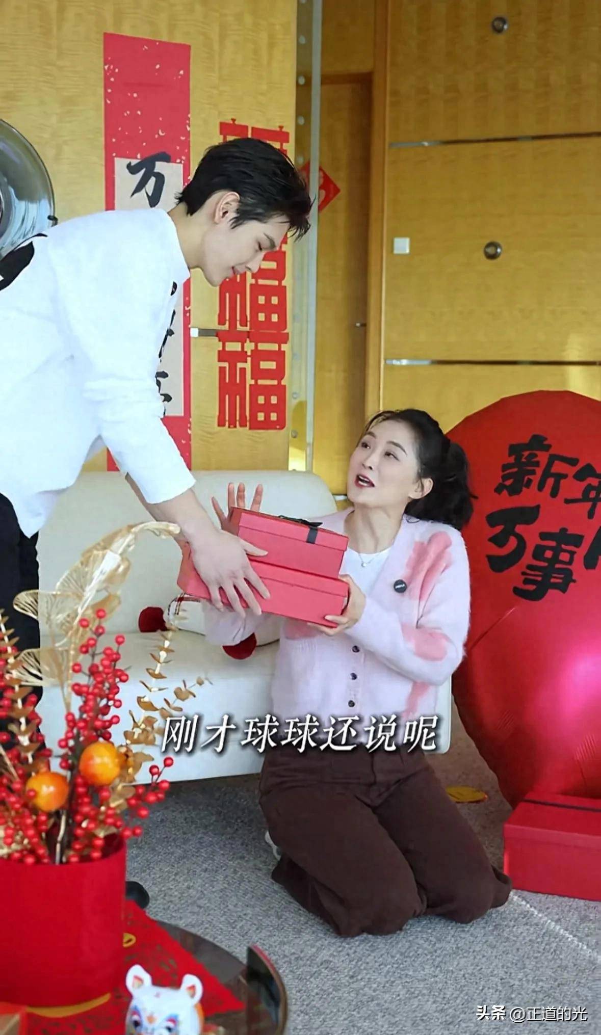 王艳最近在社交平台上分享了一段视频,视频中她和19岁的儿子球球一起贴春联、布置家里迎接新春。视频里,51岁的王艳穿着一件白色打底衫,外搭粉色开衫毛衣,下身配着咖色裤子,打扮显得清新而淡雅。她的头发扎成了马尾辫,妆容非常简单,只有眉毛稍作修饰,涂了淡淡的唇彩。虽然她开启了美颜和磨皮功能,但依然可以看出她年过五十,眼窝略显凹陷,黑眼圈也较为明显,整体看起来有些憔悴。