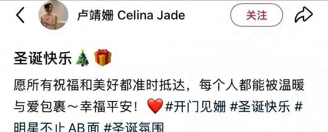 圣诞节来临时,明星们的节日过得如何呢?在圣诞当天,卢靖姗分享了自己的一组节日照片,这些照片甜美到让不少网友为之心动。