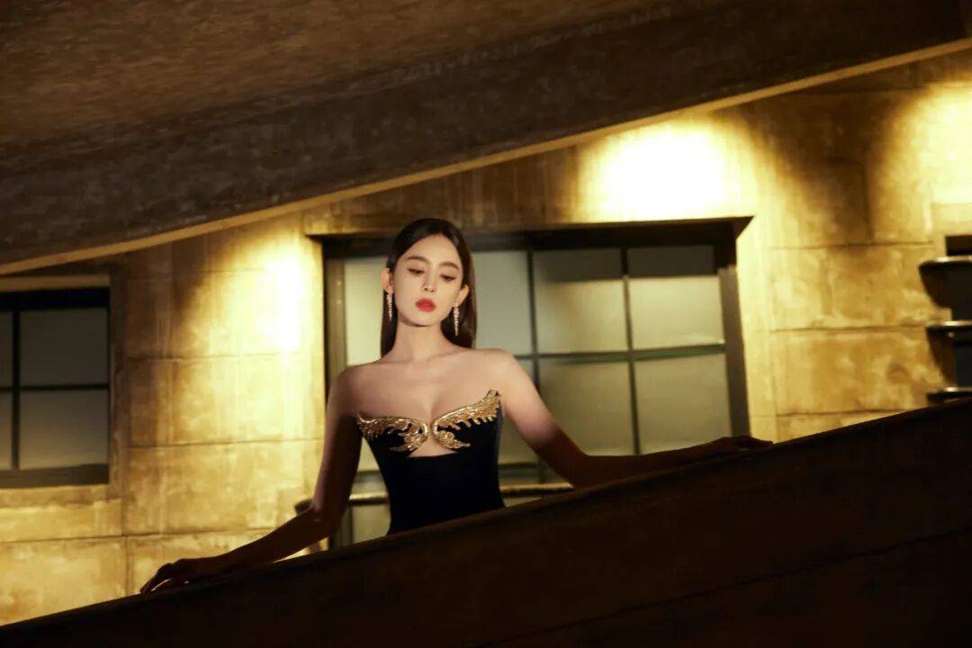 当她移动时,便化身为动态的诗篇。“步步生莲”——这个词用在她此刻的姿态上再贴切不过。她行走于黑夜之中,步履从容而稳定,仿佛脚下不是冰冷的地面,而是漾开涟漪的镜湖。那身性感的礼服随着她的步伐摇曳生姿,金色的纹路在黑暗中划出流光的轨迹,既保持了皇室般的优雅仪态,又于每一步间散发着无声的、强大的气场。她的行走本身,就是一种表演,一种宣告,将周围的黑暗都转化为只属于她一人的无限舞台。