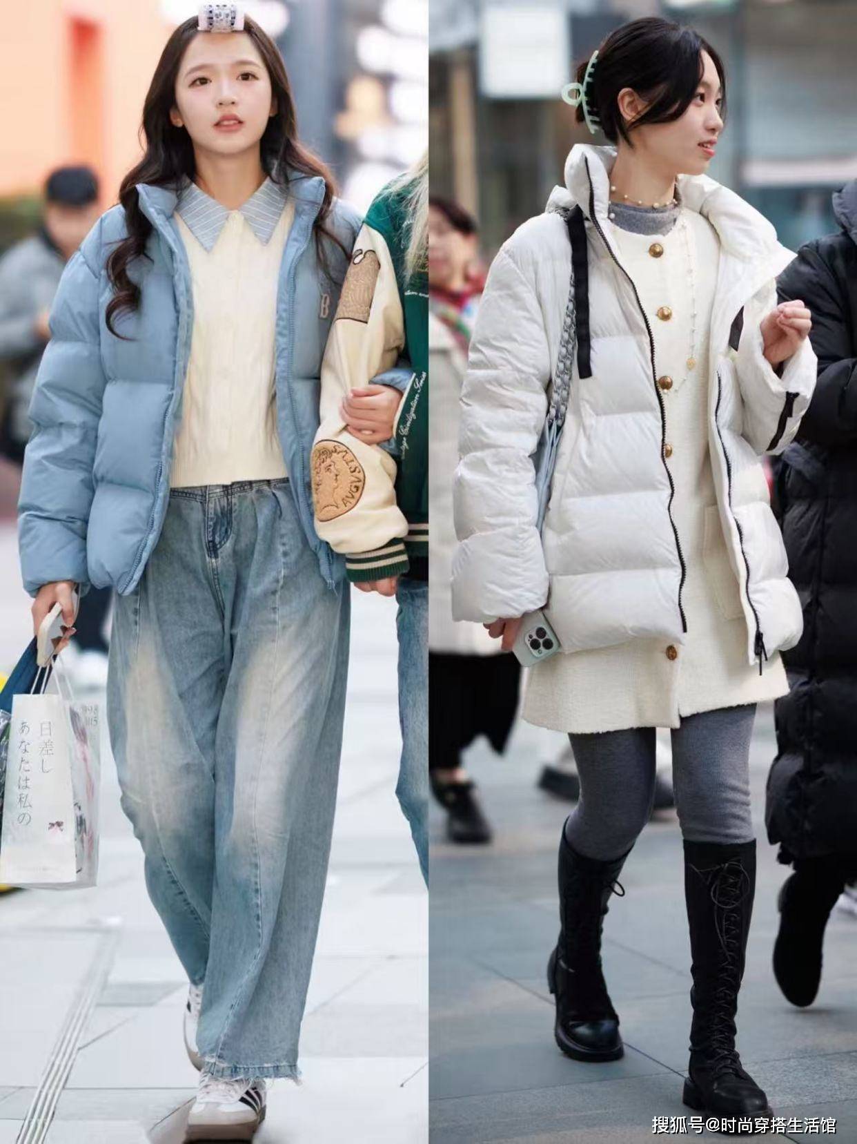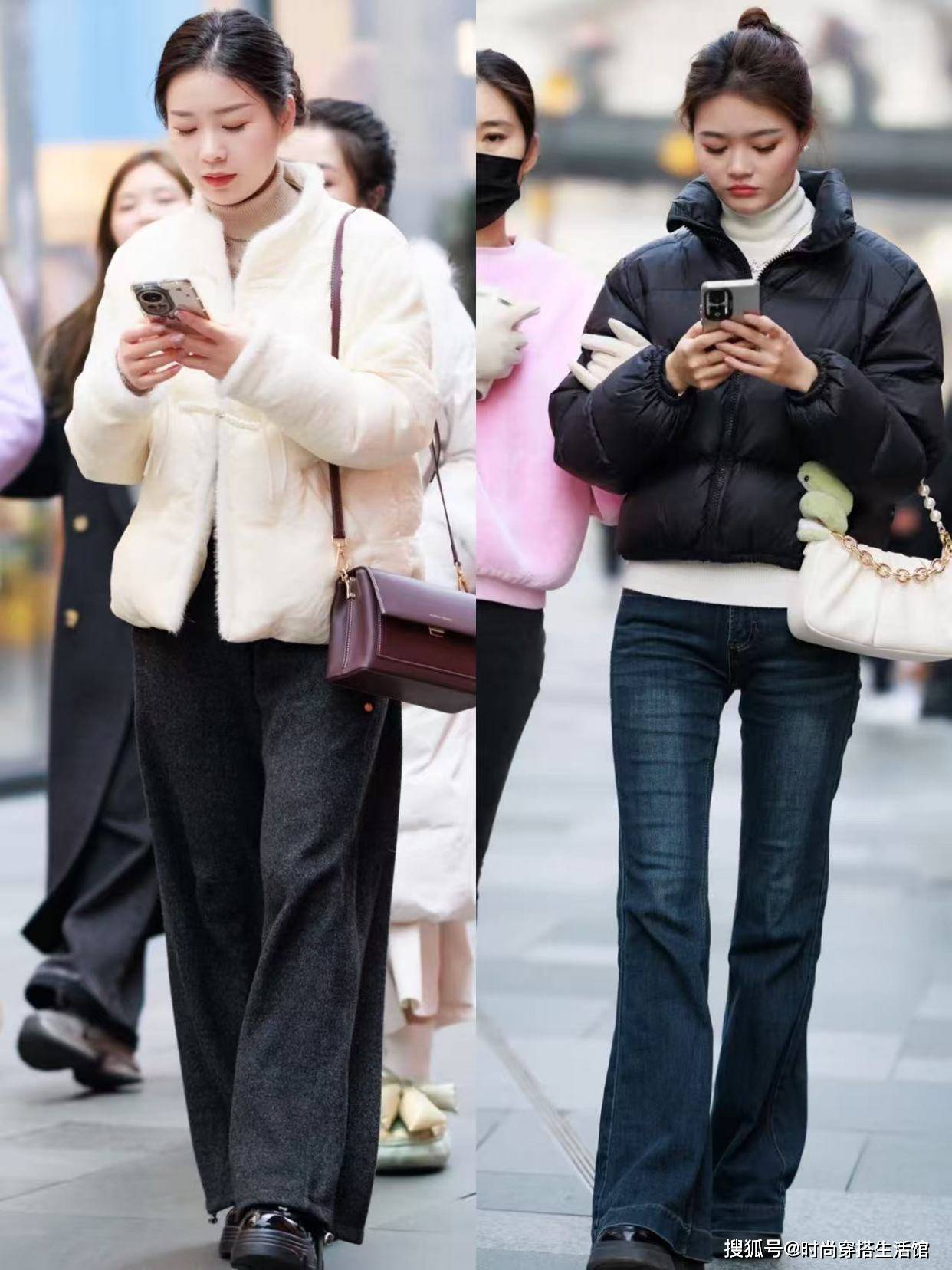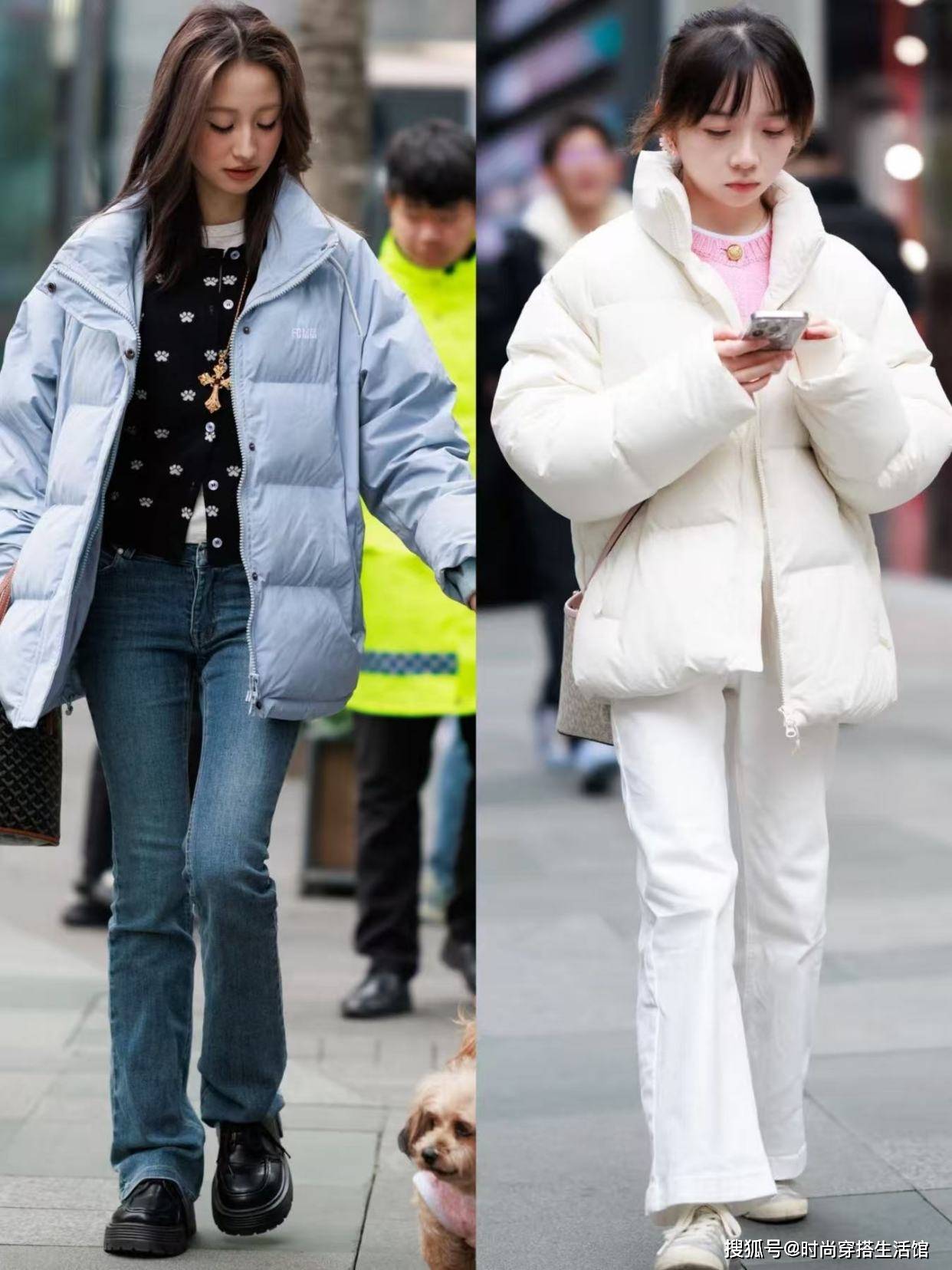 其次对于冬天选择羽绒服穿搭的话最担心的就是臃肿和显胖的现象,那么我们可以学习太古里街拍博主选择将羽绒服敞开穿露出内搭的方式,从而更好的优化出身材比例,避免出现五五分身材。最常见的搭配方式就有塞衣角,比如选择将上衣塞进下装里面或者是借助上短下长和腰带的方式,从而更好的视线修身和显瘦的效果,完美的避免羽绒服的臃肿感和厚重感,轻松就彰显出随性和慵懒的气质感。