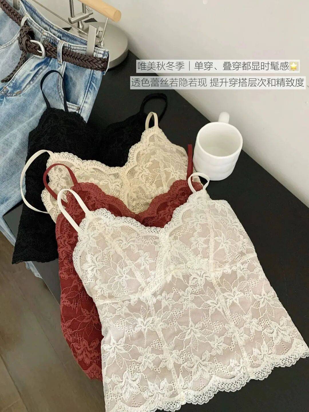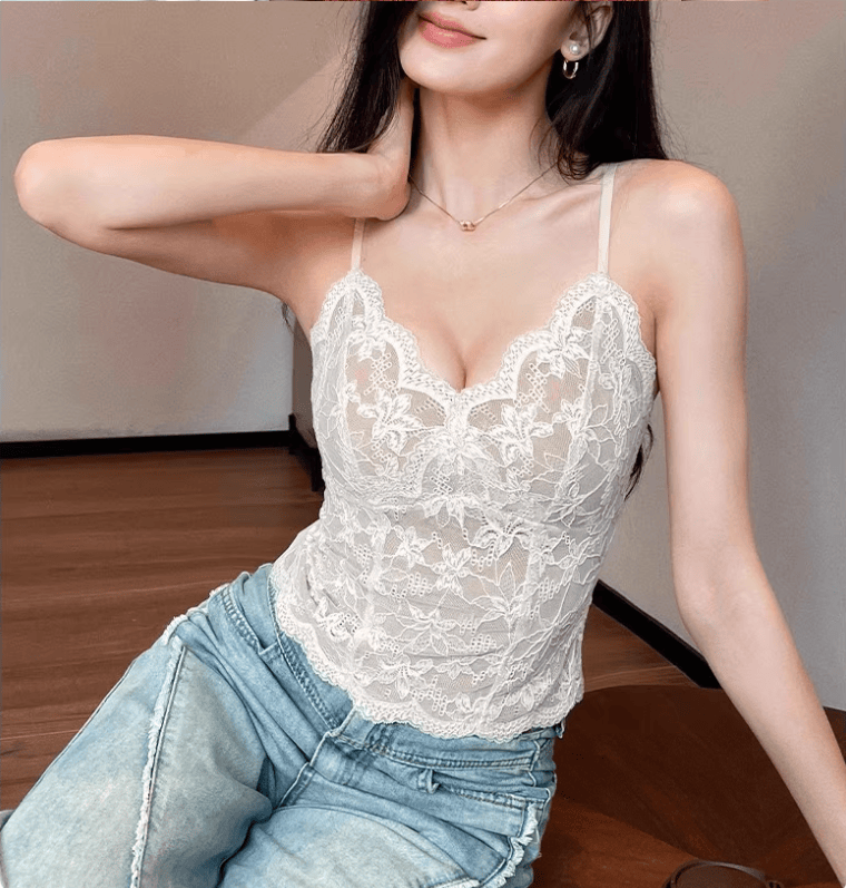 这件软蕾丝吊带直接把 “纯欲” 焊在身上了。