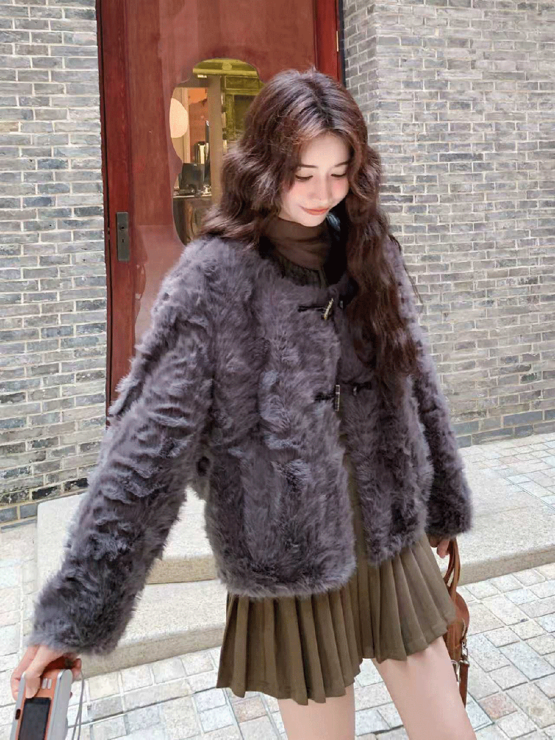 偏爱复古风,或是想要一件减龄又百搭的冬日单品,温柔牛角扣皮毛一体外套,将完全击中你的心。