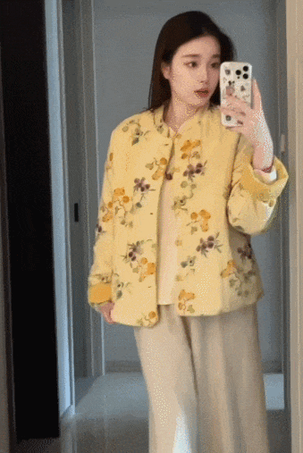 水墨花纹裹着软乎乎的棉感,直接把中式雅致焊在了衣料上,穿上温柔得像是从画里走出来的人!