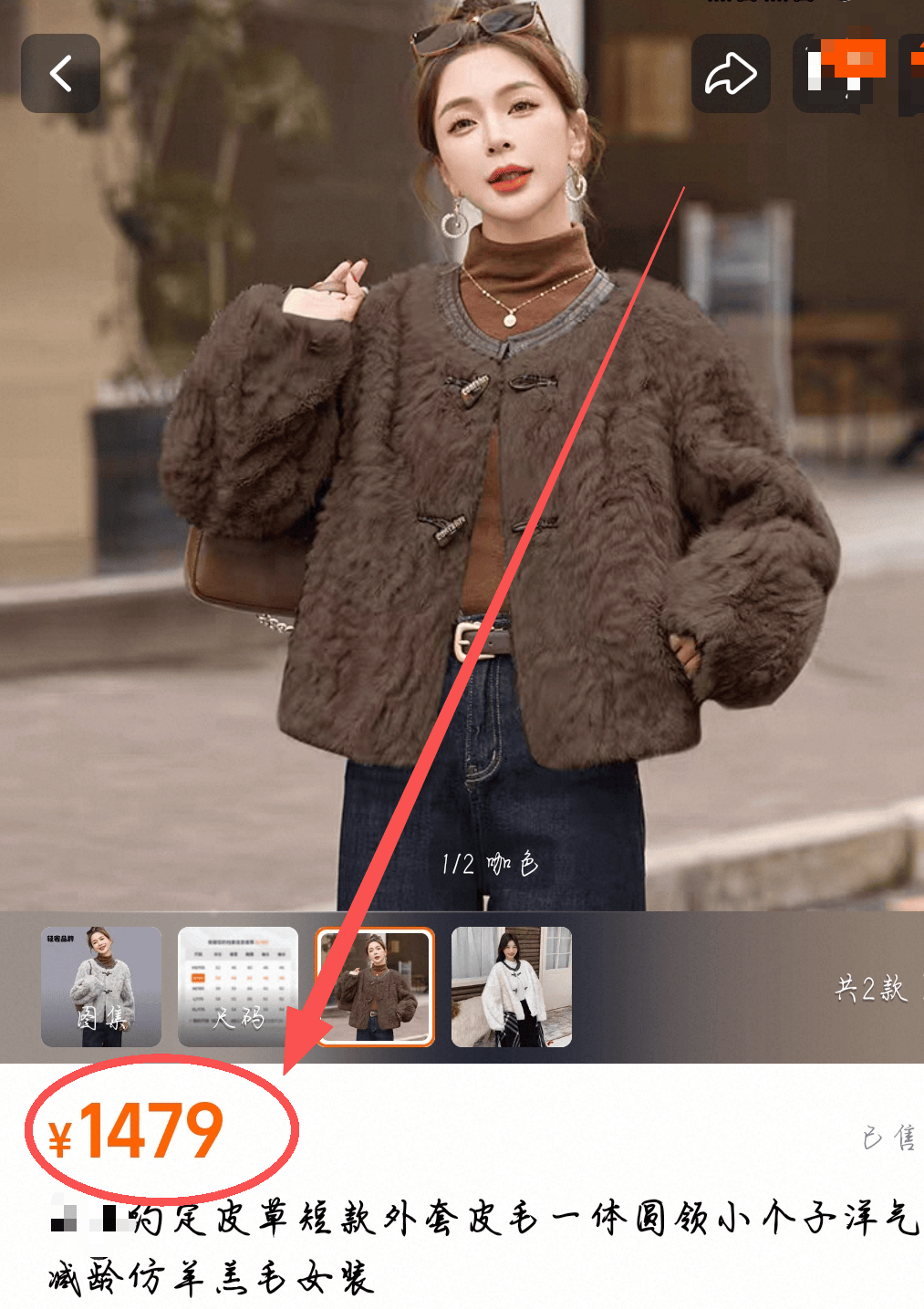 同款式、料子的皮毛一体外套,某宝同款售价1400+!