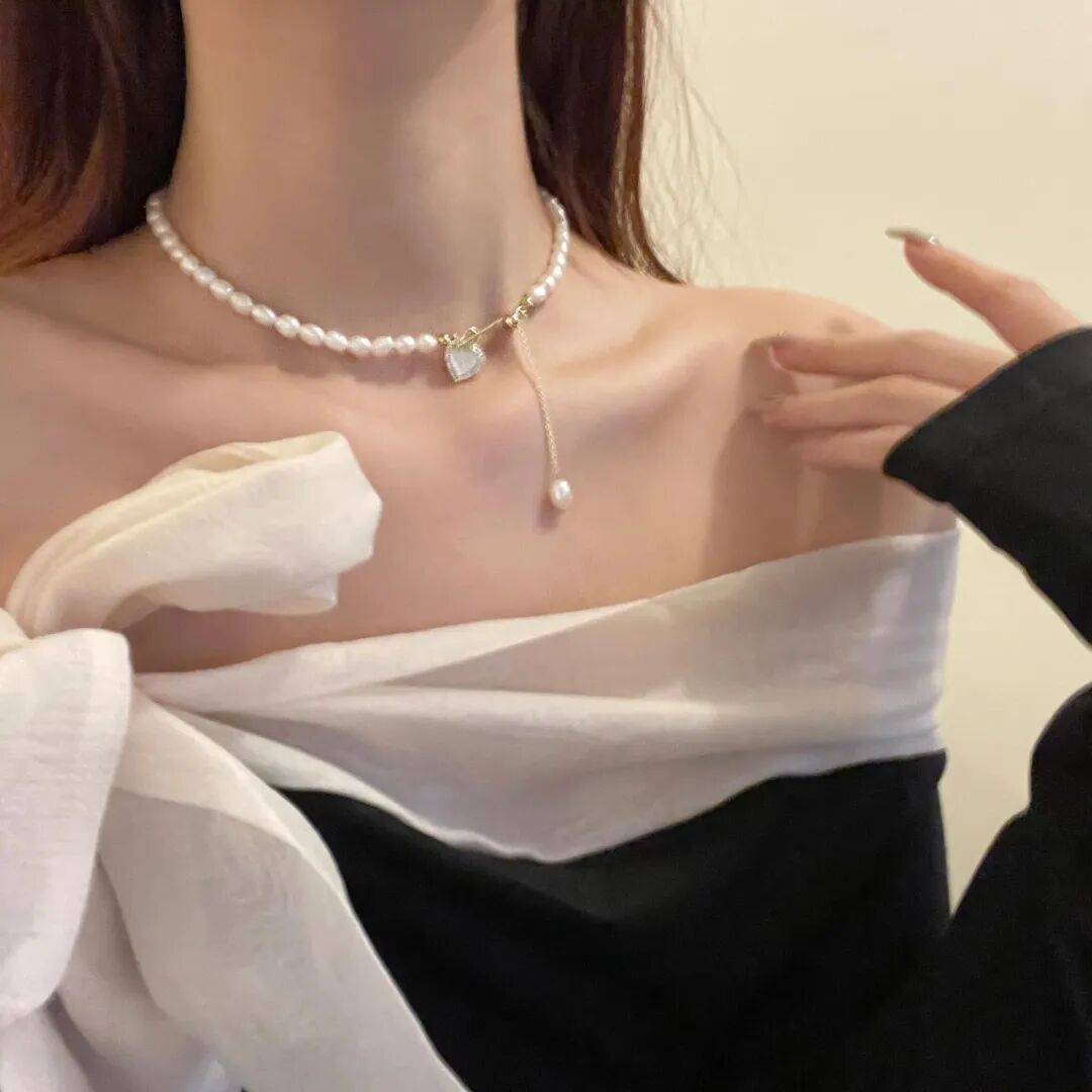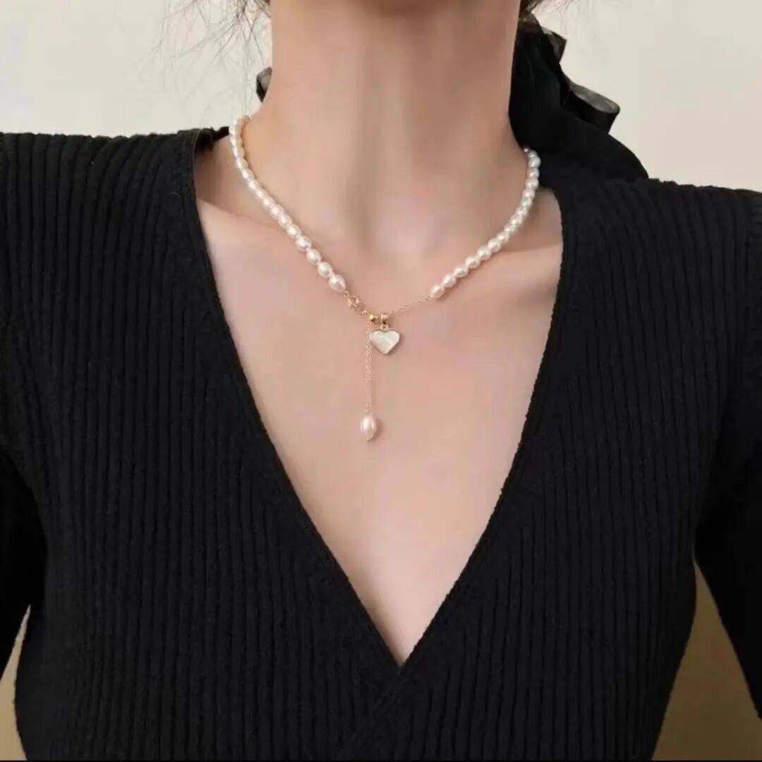 日常可搭配韩系风格,奶油色贝珠+天然贝母爱心,滑珠延长链可自行调节,温温柔柔的感觉,小小的贝母爱心,精致感爆棚!