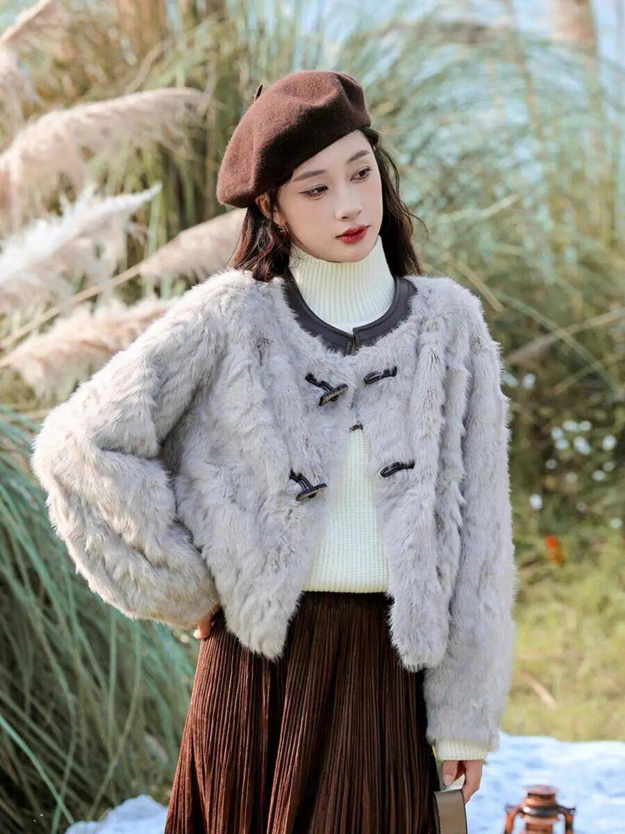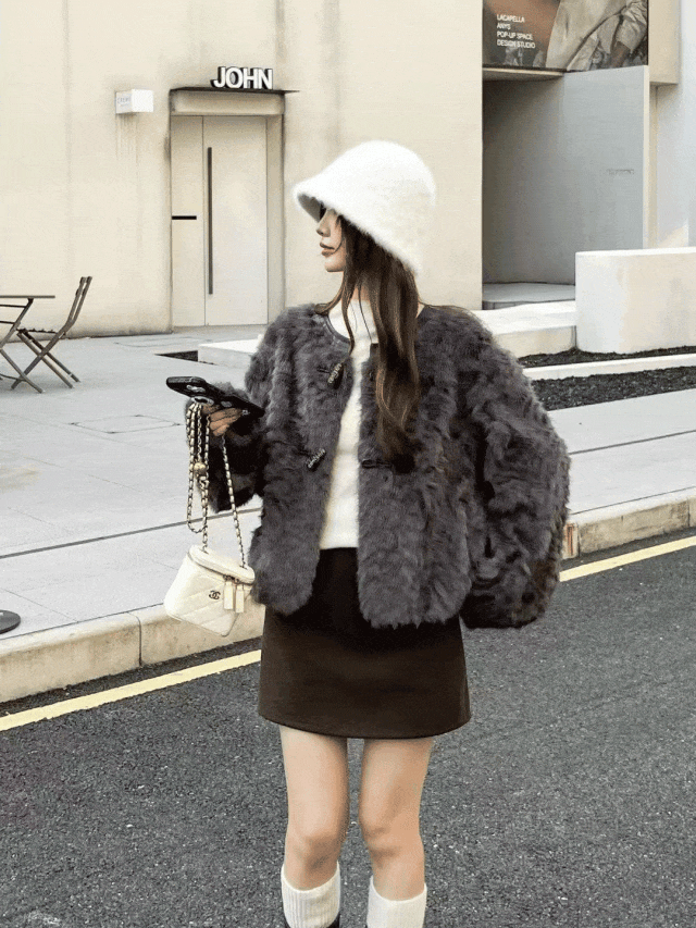 时髦保暖,好穿好看高质感,欧欧推荐你直接入手佐姿莎短款小香风温柔牛角扣皮毛一体外套,显瘦百搭,还特显腿长,日常穿超可!