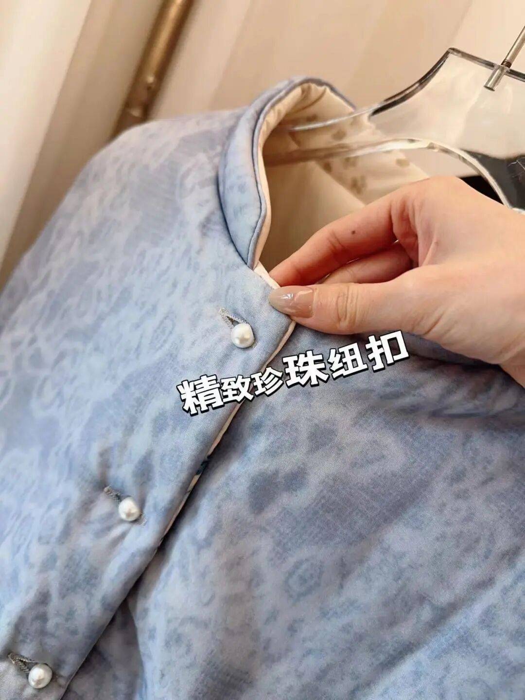 一侧手工盘扣,一侧精致珍珠扣,精致高级!