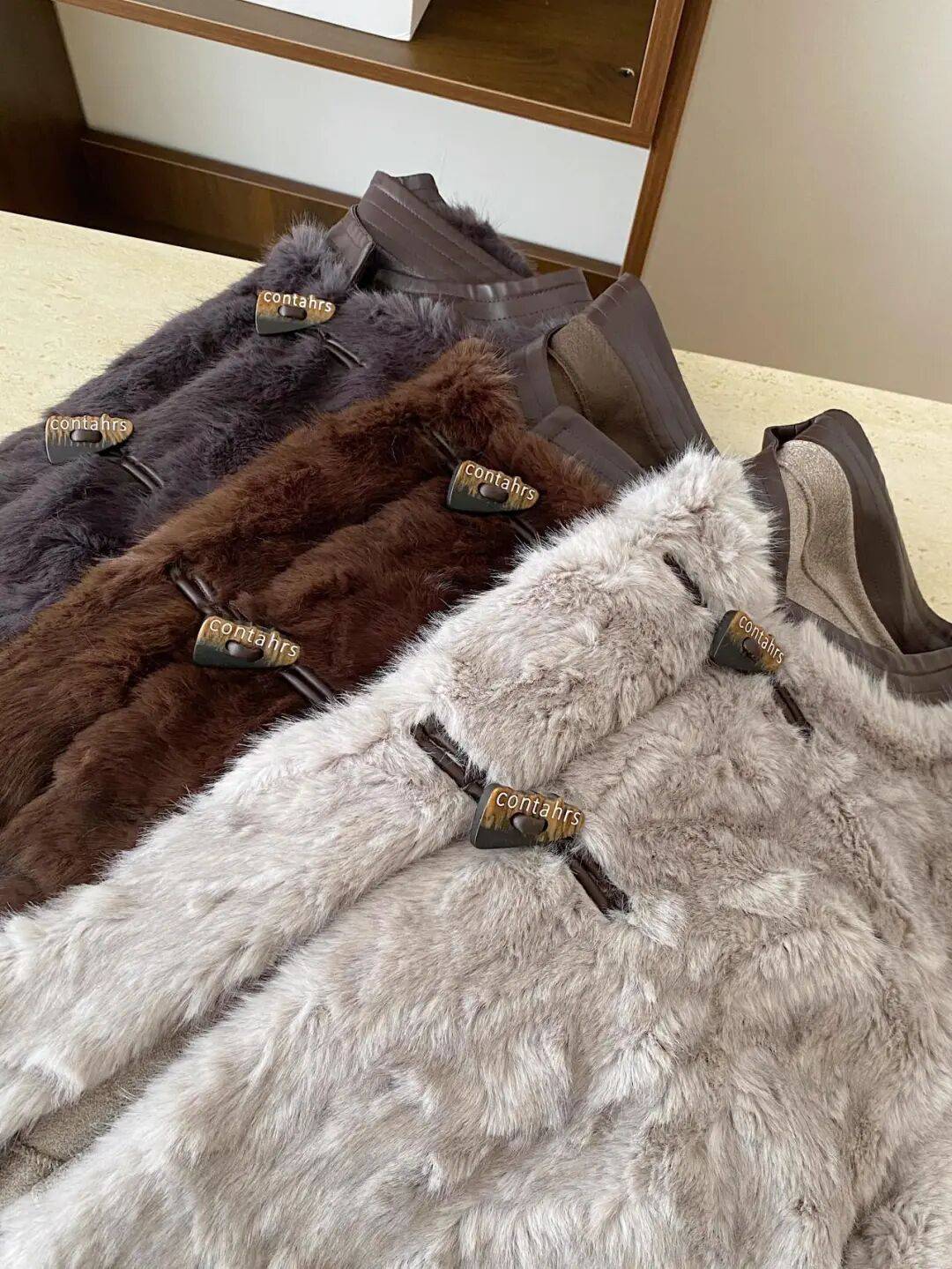 现在入手,粉丝福利价:温柔牛角扣皮毛一体外套 139元/件。