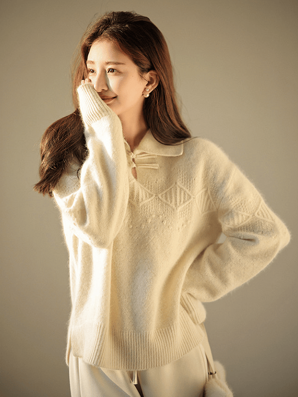光颜值就已经胜出了,今年超流行的手工国风盘扣设计,上身有种其他毛衣比不上的优雅与大方,传统之美。