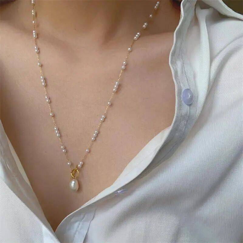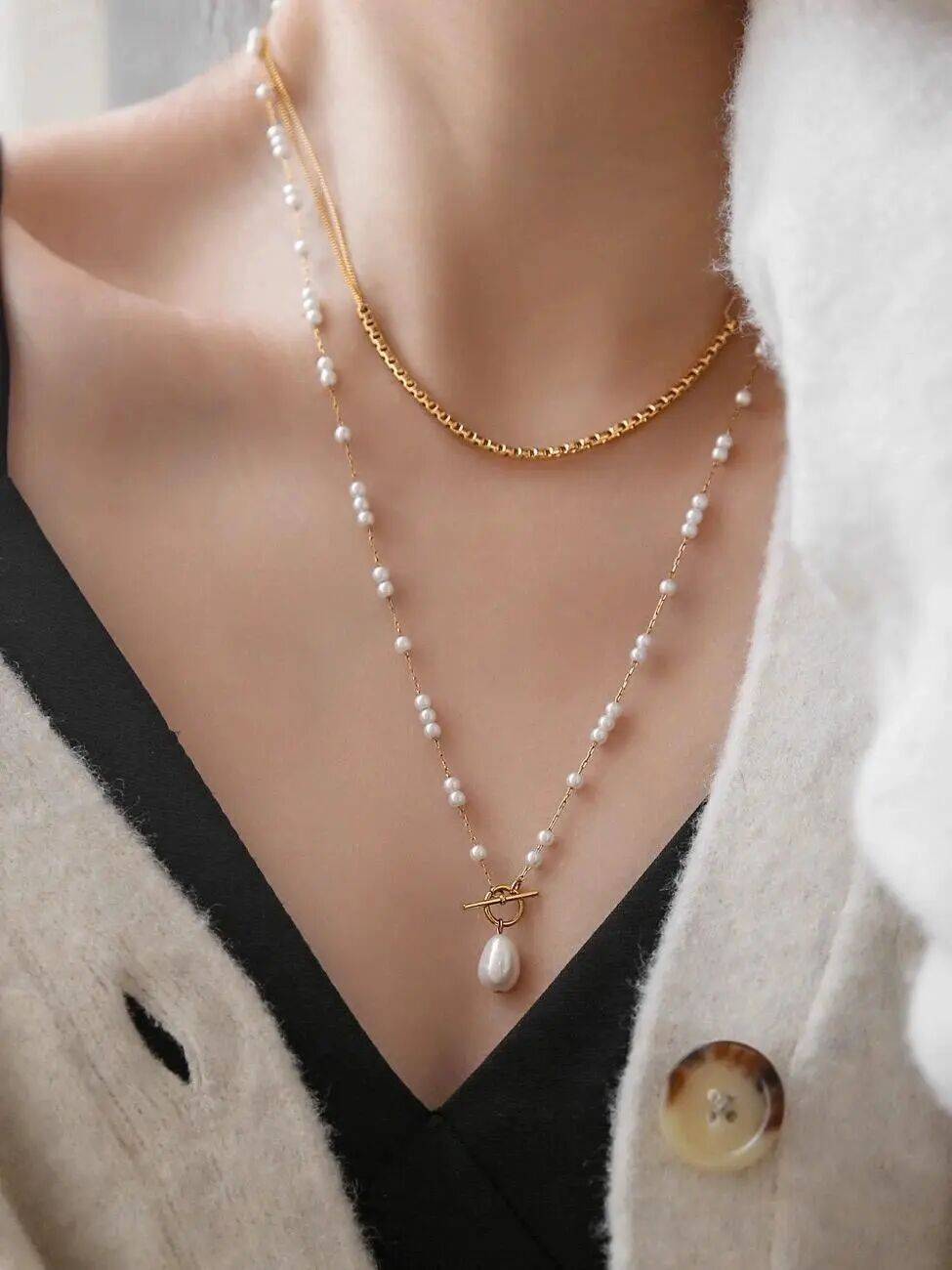 方便到可以3秒就戴上的T扣长款珍珠吊坠项链: