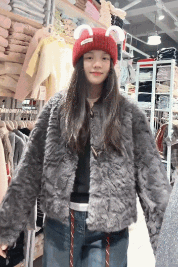 又柔又暖超贴心!外层是云柔毛绒料,摸着顺滑又暖和;内层是柔韧皮绒,织得密实,上身挺括有版型。