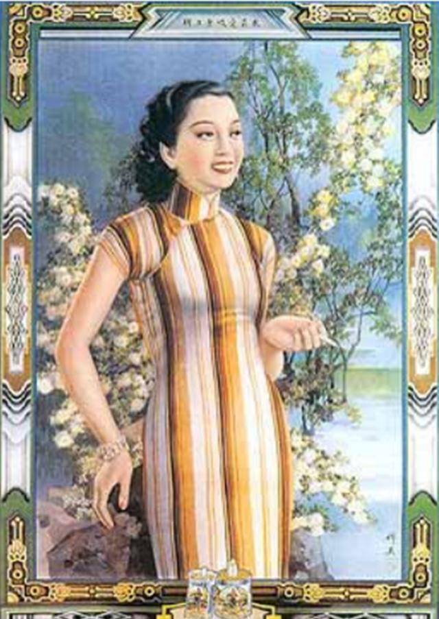 面为全体之首部,颜面秀雅即为全体秀雅,潘郎美貌、西子娇容,古今艳称,谁不心羡。这句话出现在1920年《申报》上的雅霜护肤品广告中。在民国时期,广告中的女性形象普遍都具备娇美秀丽的面容,且追求圆润匀称的美。广告中的女性面庞,通常带有些许婴儿肥,眉毛纤细且修长,一双大眼睛常常含笑,樱桃小口,整齐洁白的牙齿,展现出典型的朱唇皓齿之美。尤其是在那些穿旗袍的女性广告中,形象更为大胆一些。这些广告往往不仅展现女性的美貌,更强调她们的自信与优雅。 这张广告来自天津大华兴记染厂,展现的是民国时期女性形象的另一种风貌。虽然广告中的女性美丽动人,但她们的身形也在经历着变化。早期的广告中,女性的身材多是平坦、简朴,服饰宽松,几乎没有任何曲线,体现的是一种保守的美。而到了后来,广告中的女性开始穿上紧身旗袍,露出胳膊,旗袍的开叉常常开到大腿,展现出更为大胆的身材曲线。这种转变在花露精的广告中尤为明显,堪称当时最大胆的广告之一。