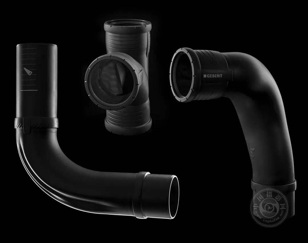 该系列图片以全新视角呈现了吉博力SuperTube废水管配件。在黑色背景衬托下,仅凭精准布光,这些看似不起眼的物件便化身为高科技艺术品。其独特的造型与弯曲结构跃然眼前,技术精度与创新精神在光影中得到戏剧性凸显。管内视角的拍摄尤为引人入胜——探针镜头的运用赋予画面超现实的迷幻深度,将观者吸入管道世界。光影与形态在此交织共舞。
