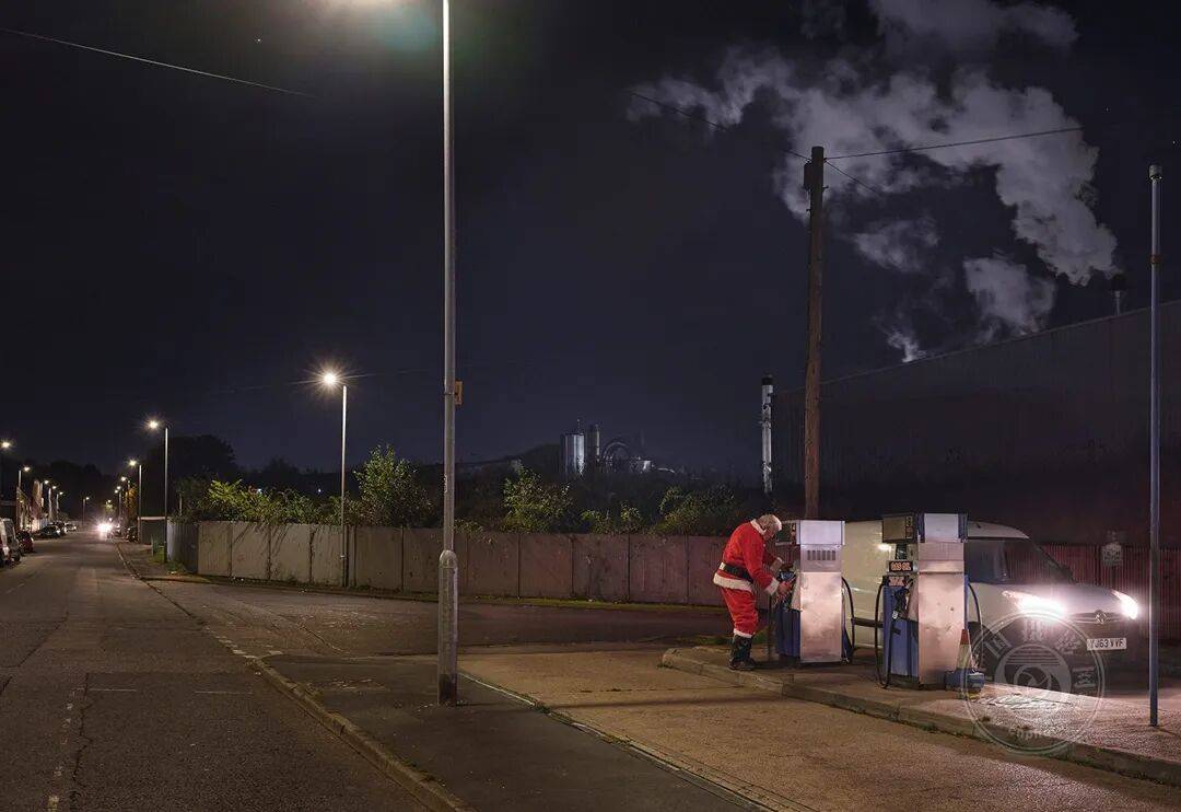 他那离奇的形象总让我着迷,我渴望打破完美快乐老人的神话,将他拉近现实——带回真实世界。他不过是个穿着红衣的普通人,出门工作谋生罢了。这些男人不像传说中那般神奇,穿着廉价的PVC靴套和魔术贴固定带,他们本身并无特别之处,却有着各自的怪癖与独特气质,在我眼中依然显得格外特别。比起神话中的形象,我更觉得他们非凡。