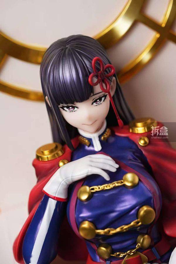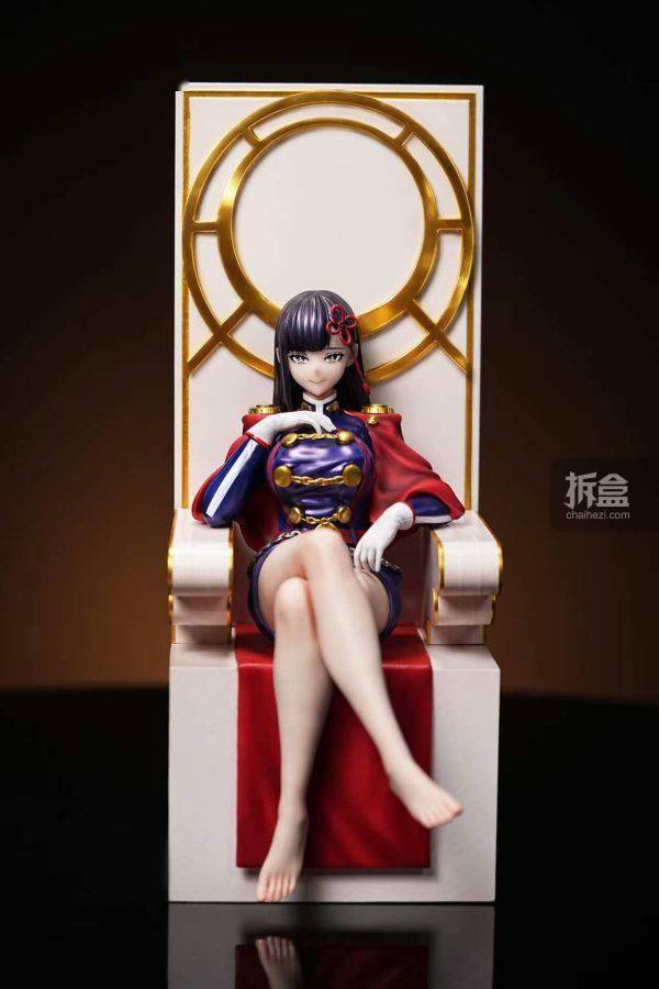 专业还原角色魅力。紫黑长发、金属饰件细节精准,面雕复刻眼眸渐变高光与冷艳唇线,白金王座底座适配原作风格,坐姿飒气,匠人打磨让二次元魅力跃然眼前。