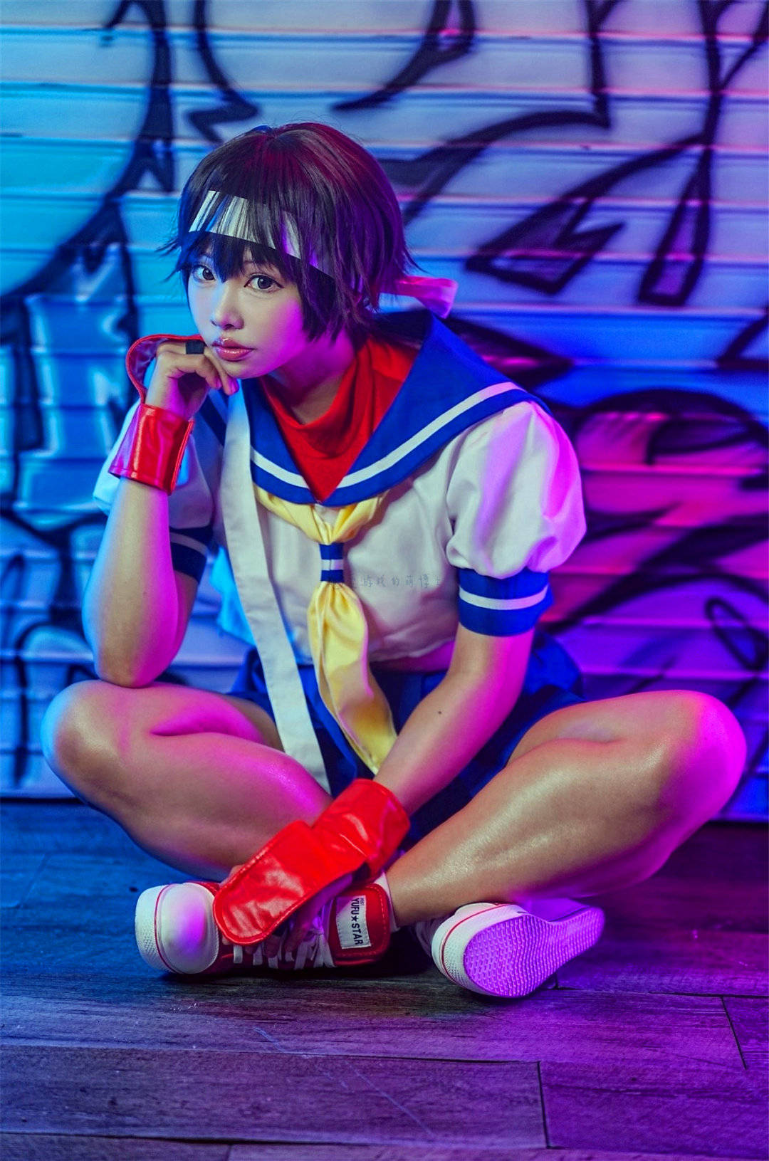 不得不说,看到这个春日野樱,让我迅速忘记了之前的春丽和百合。蓝白相间的校服质感十足,标志性的发带束得利落又俏皮,弧度复刻得恰到好处。Coser眼底藏着满满的元气,咧嘴笑时的清甜感和原作里活力四射的高中女生如出一辙,连动作里带着的轻微跃动感都拿捏到位,仿佛下一秒就要跃出屏幕!当然,最显眼的还是那双蜜大腿,非常带感!
