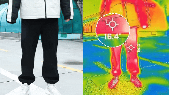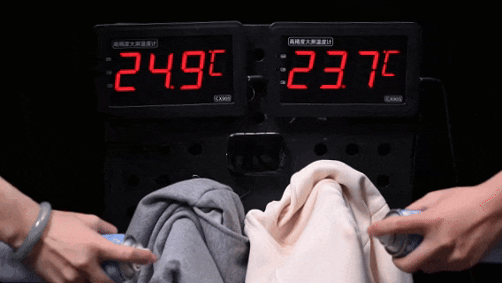 几秒钟,普通抗寒裤就已经降到了0℃以下,而素湃气凝胶抗寒束脚裤还保持在15℃以上,抗寒效果绝了!