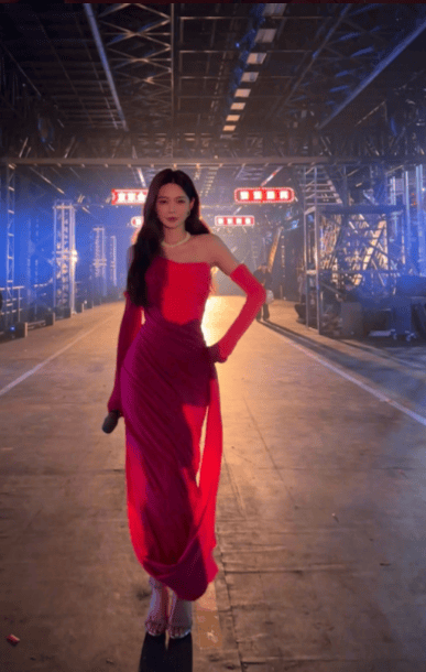 说实话,她一亮相的那一刻,很多人都愣住了。礼服本身已经足够抢眼,线条利落又不失柔美,颜色大胆却不浮夸,贴合身形的剪裁把优势全都摆在台面上,完全是那种“站着不动也能出片”的造型。可偏偏,她手上多了一样怎么看都不该出现在跨年舞台上的东西——橡胶质感、颜色醒目、像极了家里水槽边那双洗碗手套。