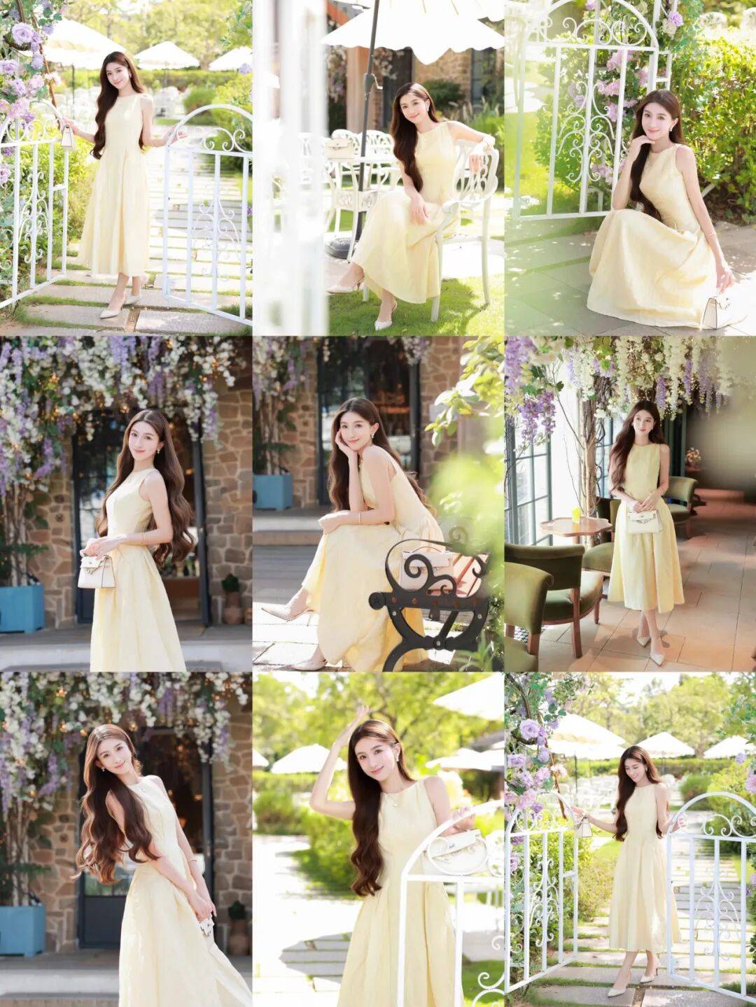 往藤花拱门旁一站,手轻搭栏杆、裙摆随姿舒展,清新氛围直接封神~不用硬凹姿势,慵懒坐长椅、轻拎小包、抬手顺发,松弛感一秒拿捏;背景留足花藤与柔绿,暖调光线裹满温柔感;穿搭选柔黄长裙衬得气质通透——照着这么拍,发圈直接被问爆“这是哪家花园?”