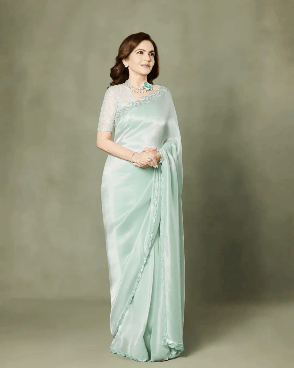 印度王室穿搭在色彩与材质的选择上,始终追求奢华与平衡,这也是拉迪卡穿搭的重要特点。色彩方面,王室穿搭偏爱浓郁饱满的色彩,如正红、墨绿、鎏金等,这些色彩不仅象征着吉祥与尊贵,更能凸显穿着者的气场。