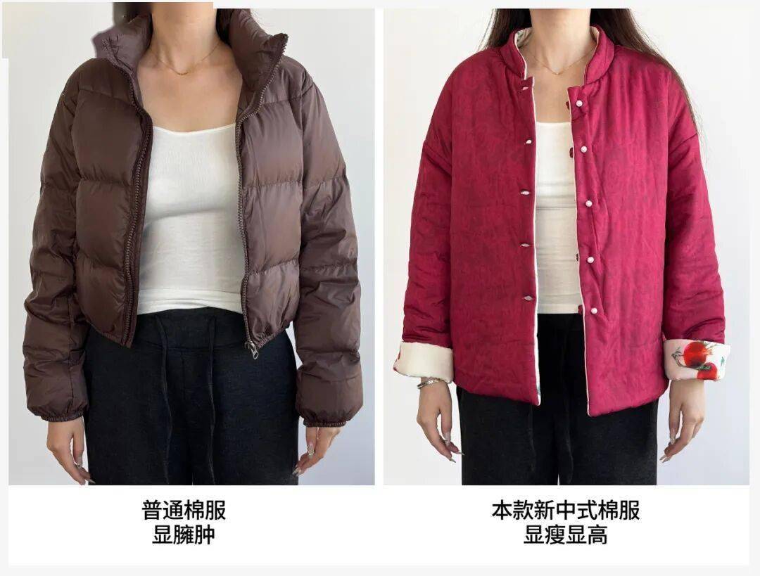 同时上身后和普通棉服对比,差距不是一般大!