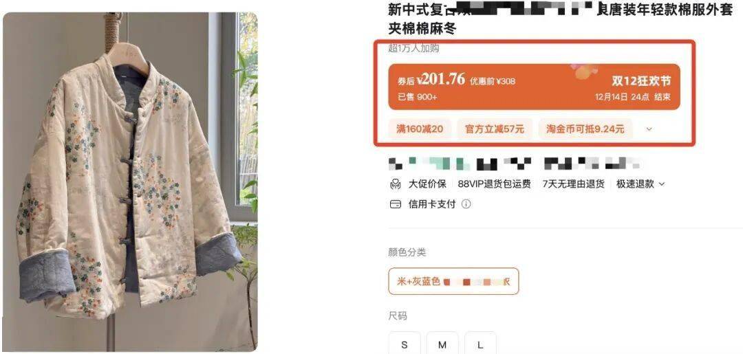实话说,这件新中式棉服线下门店随便一件也要300多了!