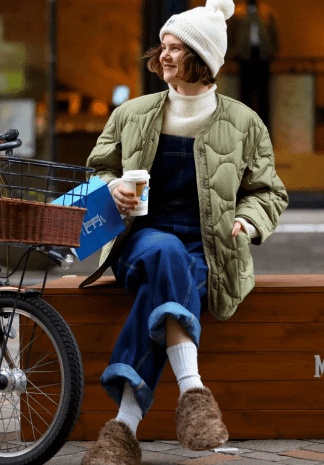 冷一点的时候,穿上棉服外套就是轻、暖、软、松弛、舒服、不想脱。