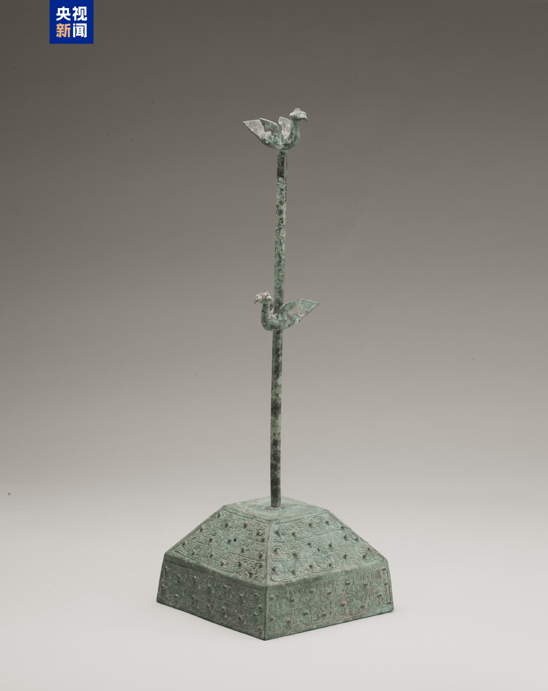 △ 春秋·铜鸟柱,山东大学博物馆藏。