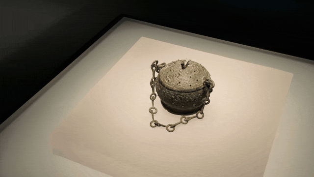 △ 春秋·骨雕香薰,与青铜链盒同墓出土,应可以随身悬挂,内放香料以散发香味。山东大学博物馆藏。
