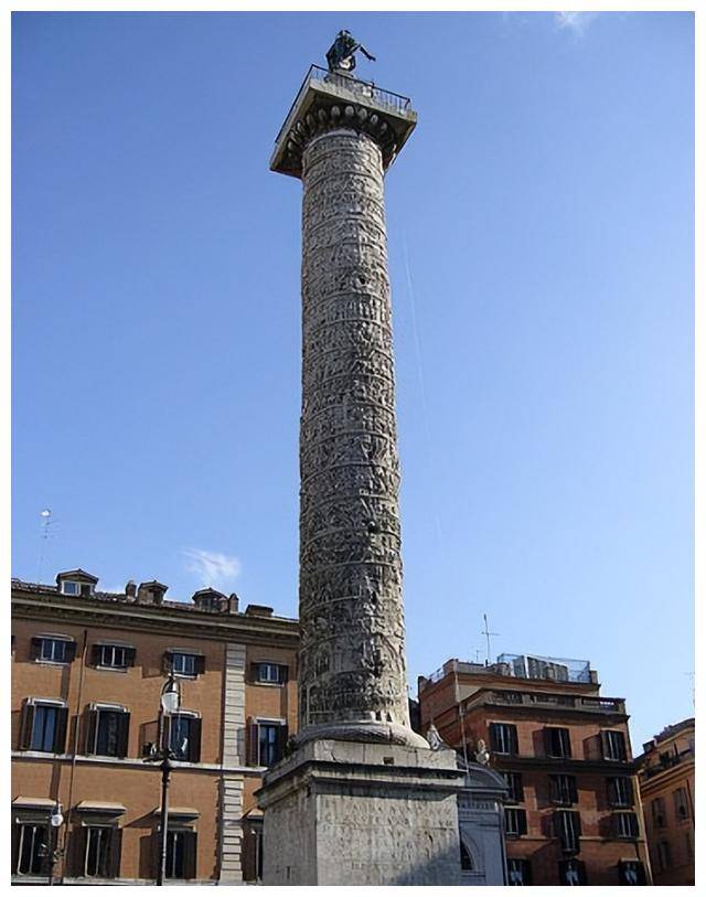 罗马的科隆纳广场上矗立着一座神秘的纪念柱,名为马可·奥勒留和法斯蒂娜纪念柱。据说,这座纪念柱是由皇帝康茂德在公元180年左右所建,以纪念他那受人尊敬的父母。它的设计灵感来自于更为著名的图拉真柱,这座柱子于公元113年在罗马竖立。柱身上精美的雕刻生动地再现了康茂德皇帝在公元172年至175年间,针对夸迪人的一系列军事胜利,这些战役主要发生在多瑙河沿岸。 这座柱子高达39米,象征着宏伟和威严。然而,它的地下部分仍然埋藏着秘密,未被完全发掘出来,底部还有约7米未被揭示。最初,柱顶上装饰有一尊雕像,极有可能是皇帝本人,这进一步提升了它的高度感。这样可以解释公元4世纪一些文献中提到的51.95米(或175罗马英尺)的高度。柱子的内部有一个巧妙设计的螺旋楼梯,供人通往顶部的观景台。虽然以前从ViadelCorso一侧有门可以进入柱内部,但现在已经不对外开放了。历史学家认为,在这座柱子附近,曾经有一座神庙,供奉神化的皇帝和皇后,这也使得这个遗址显得格外重要。