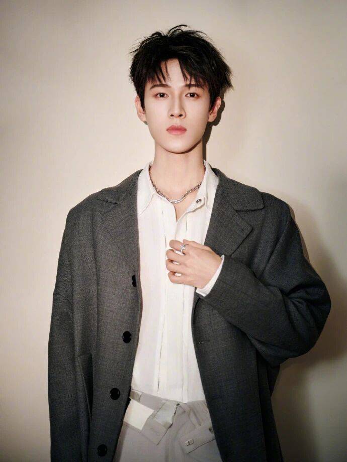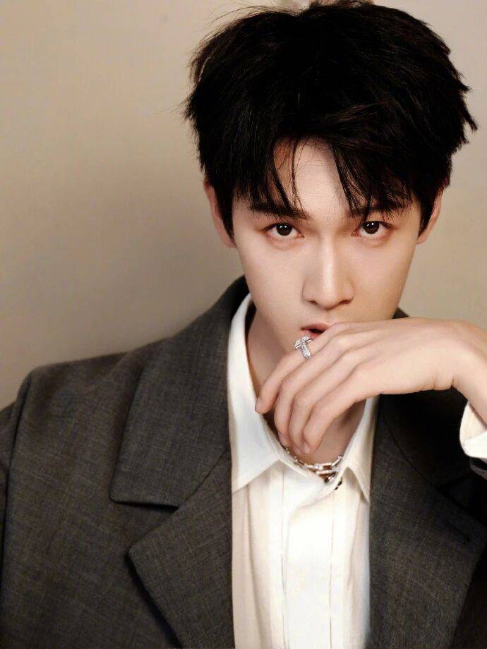 他穿的哑光灰西装是软乎乎的质感,肩线不绷不紧,抬手时袖口自然垂落,像私下里会穿的私服;白衬衫松了两颗领口,露出一点颈线,没有刻意的性感,只有少年气里刚冒头的轻熟感。最妙的是 Tiffany 的白金钻石,细链绕颈、小钻戒指戴在食指,不是 “炫富式堆砌”,是低头抬腕时,才会被镜头抓到的细碎光。