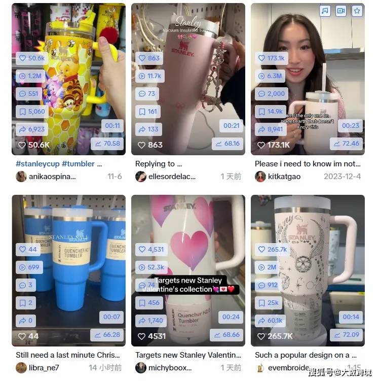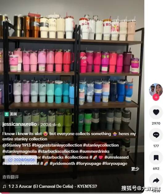 展开全文社交媒体上的Stanley热潮已经形成自主传播的生态。在TikTok上,带有#stanleytumbler标签的观看次数超过30亿次。用户在这里分享开箱视频、炫耀收藏的不同颜色杯子,甚至将不同颜色的Stanley与每日穿搭搭配。