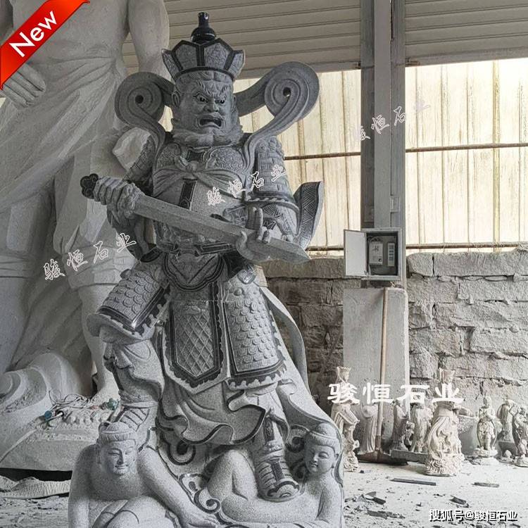 寺庙大殿之内,石雕四大天王护法神像巍然伫立,作为佛门重要护法造像,既是守护道场安宁的精神象征,亦是天然石材与传统雕刻工艺碰撞出的艺术瑰宝。