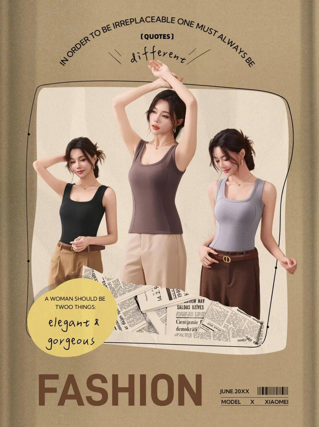 背心版型修身却不紧绷,巧妙勾勒腰腹曲线。