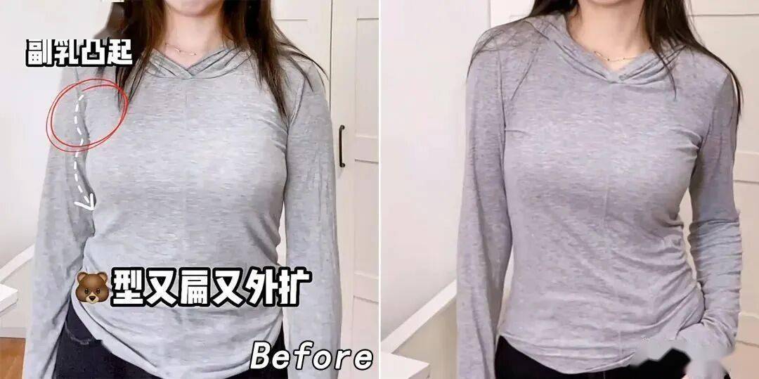 普通款穿上,胸型松垮下垂
