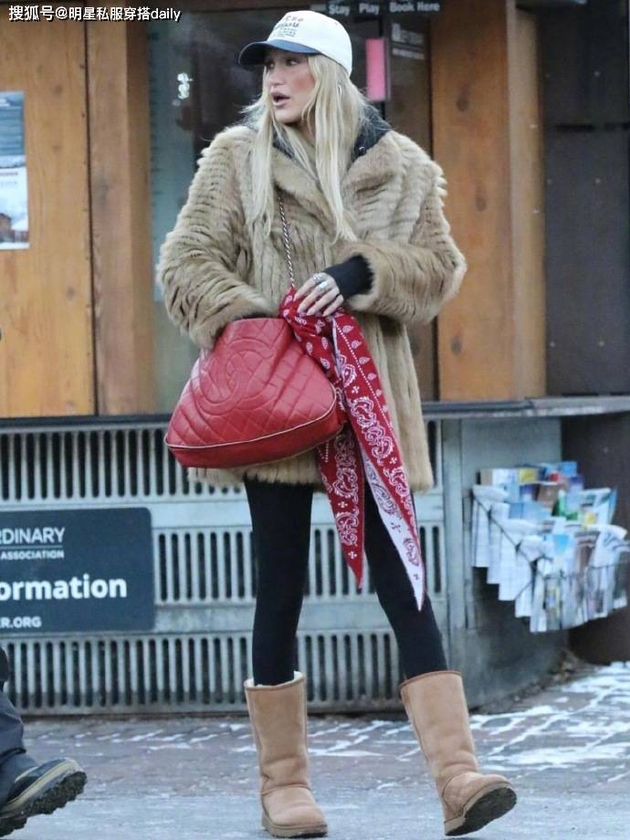 脚踩的棕色动物纹短靴,与第一套造型的雪地靴形成呼应,延续了复古基调,动物纹元素则为穿搭注入了一丝野性与个性。你更喜欢哪一套呢?