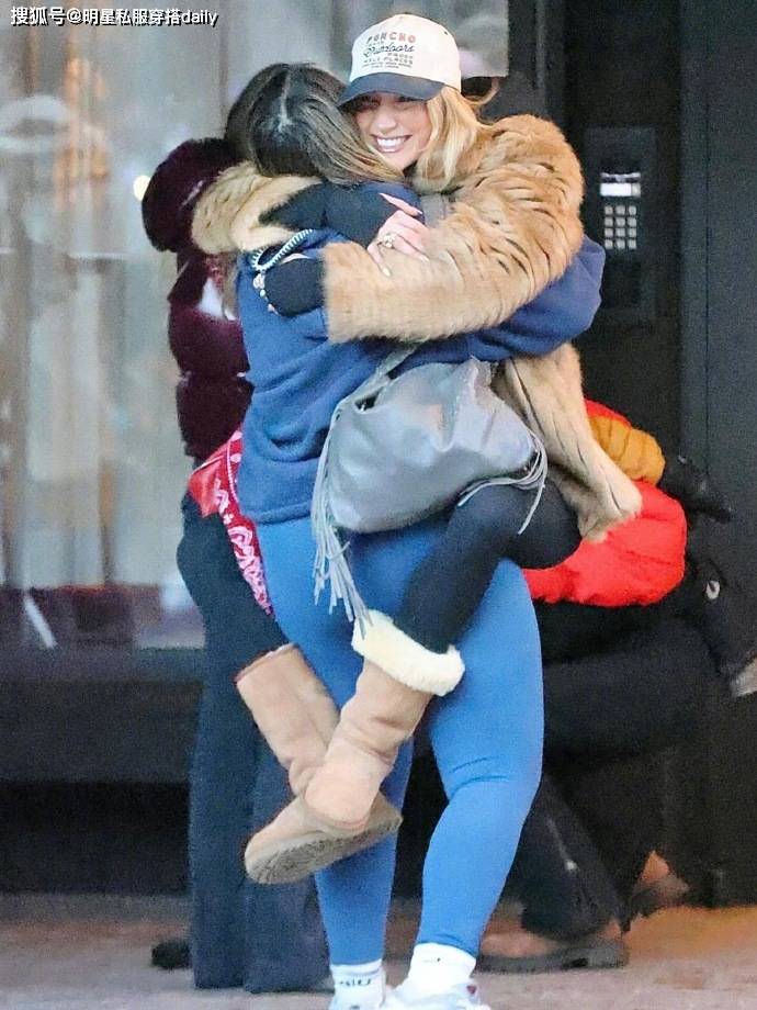 下装搭配的黑色瑜伽裤,打破了大衣的厚重感,勾勒出纤细的腿部线条,让整体造型更显轻盈灵动,同时也兼顾了滑雪度假的活动便利性。