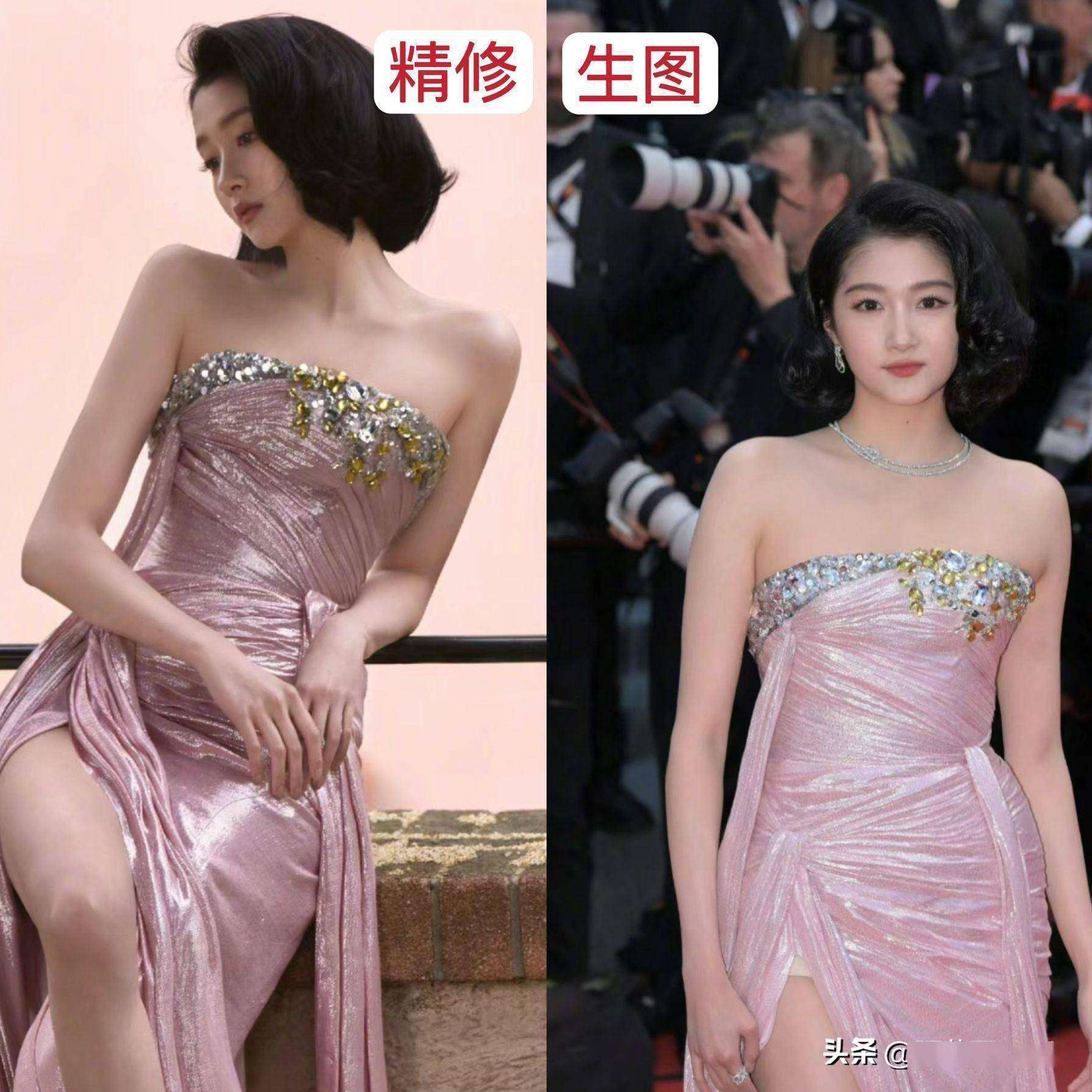 这次精修图翻车的事件,实际上揭示了整个娱乐圈修图乱象的一个缩影。曾有Angelababy因礼服设计不当露出副乳,赵丽颖在生图中的颈纹被粉丝指责为恶意截图,甚至连超模刘雯也未能避免因P图过度变锥子脸而引发争议。而普通网友更关心的是:为什么明星团队宁愿花费大量心思在精修图上自欺欺人,却在选择礼服时却不愿意多下功夫?以关晓彤为例,明明第一套礼服效果已经十分惊艳,为什么临时更换礼服去挑战高难度的剪裁,最终却让副乳赘肉等词条占据了热搜榜单。或许正如评论区一条高赞留言所说:与其把钱花在百万修图师身上,不如请一位真正懂得身材管理的造型师——毕竟观众看到的是红毯上的真人,而不是相册里的假人。