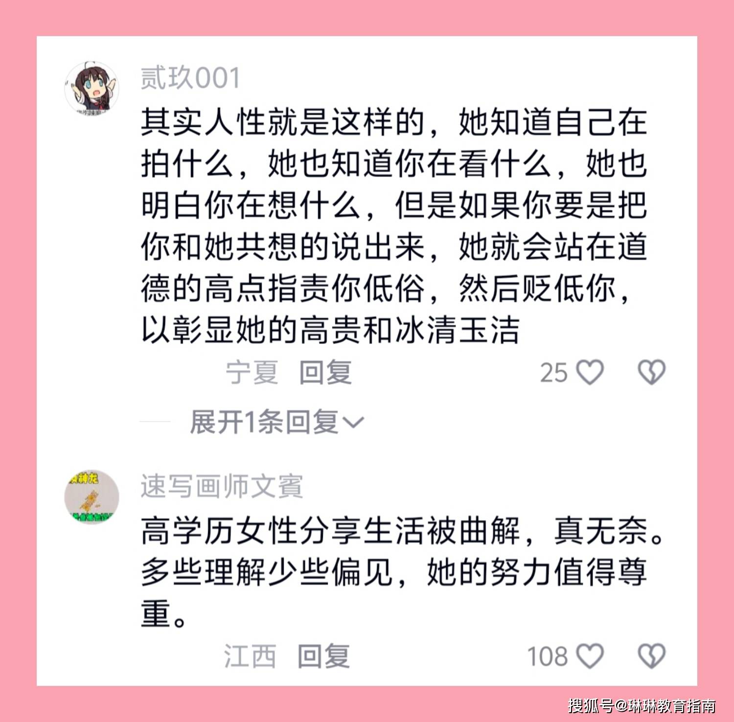 高学历人才身上有很多优点,是值得学习的,就比如高执行力和强大的精神内核,这些会让她们的努力事半功倍,也能让她们不容易受到外界的干扰,走向成功,这才是我们应该看到的,而不是把目光聚集在她人的打扮穿着上。