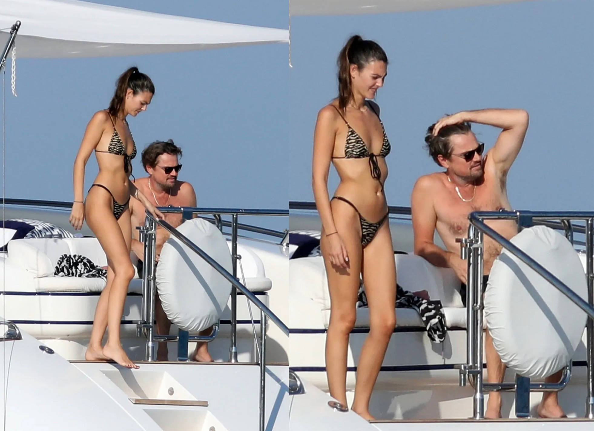 桑切斯身穿斑马纹比基尼上衣,显得时髦又贵气,游艇上还有其他乘客,都是杰夫·贝佐斯的密友。