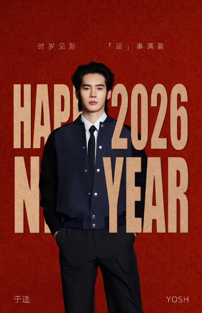 背景选了浓郁红调,和深色夹克撞出强烈的新年氛围:中间帧的 “HAPPY 2026 NEW YEAR” 字样,直接把 “新年” 的主题钉在图集中;他插兜、倚坐的姿态,松弛却不软塌 —— 像是穿着 Dior 夹克,刚好接住了新年的热烈,把 “适” 事满盈的好意头,变成了看得见的硬朗型格。