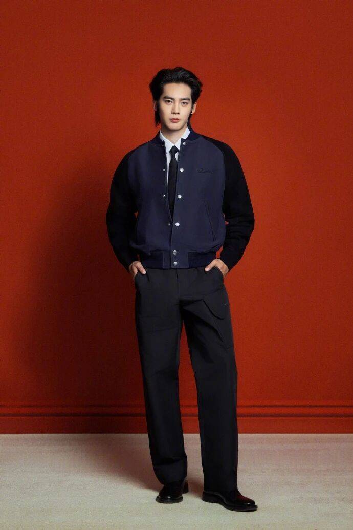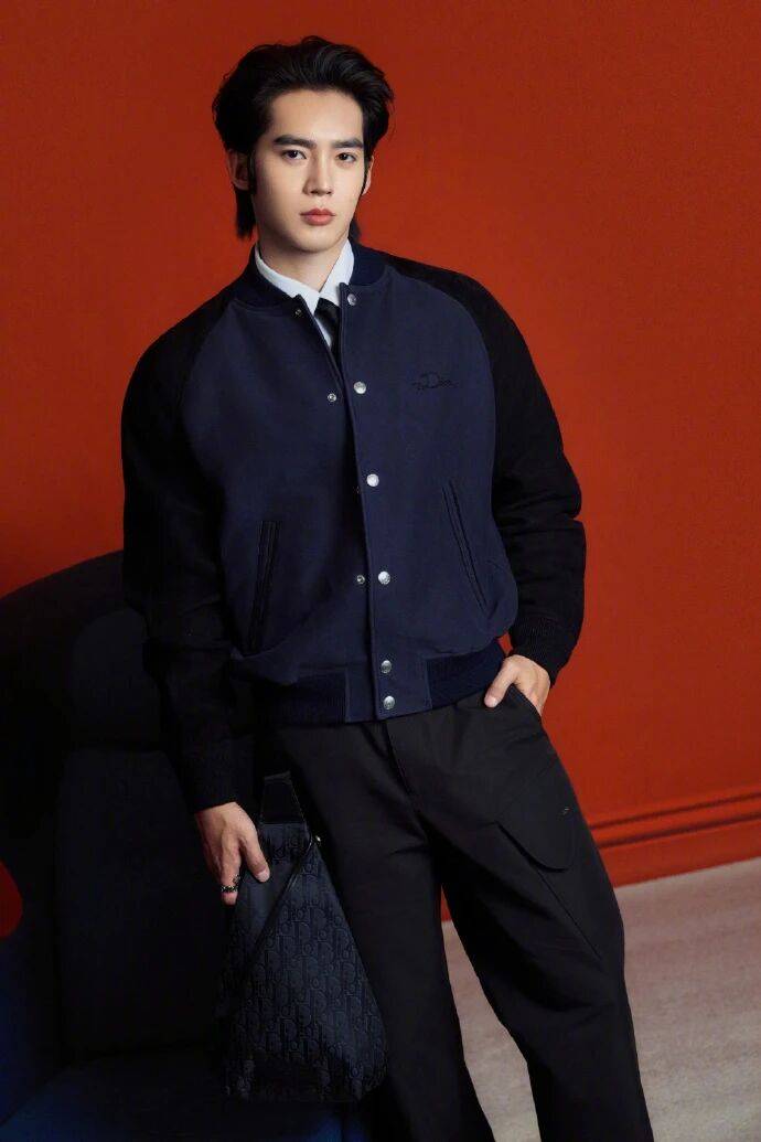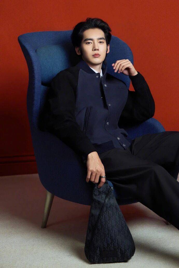 他的每个动作都没刻意摆 “型男 pose”:插兜时的肩线舒展、倚坐时的手臂搭靠、侧身时的轮廓利落,全是 “穿惯了利落造型” 的自然松弛 —— 不是 “硬凹硬朗”,是 Dior 夹克的利落,刚好嵌进了他的气质里,新年的 “适” 事满盈,更像他型格自带的锐气延伸。